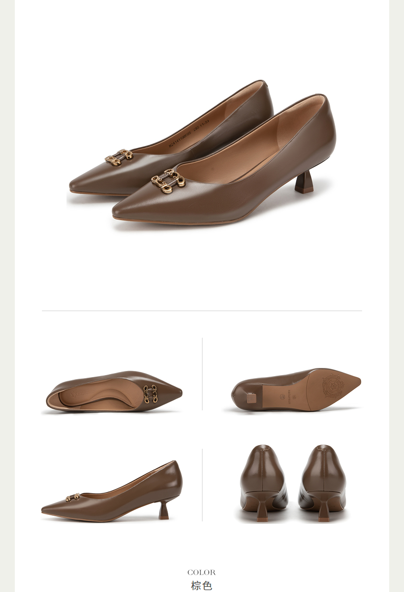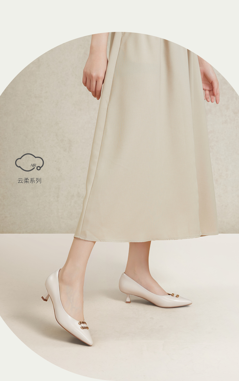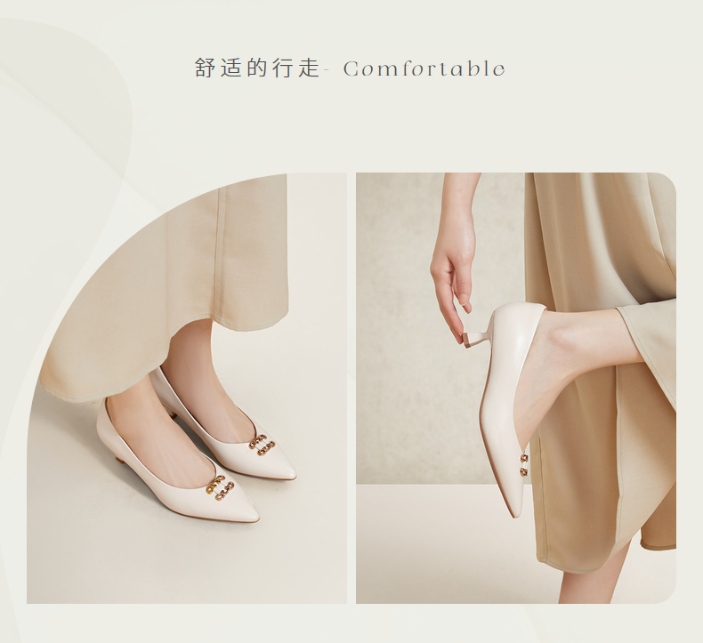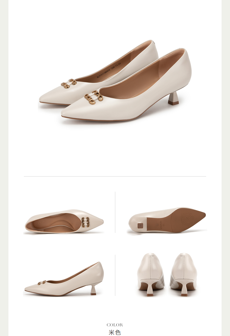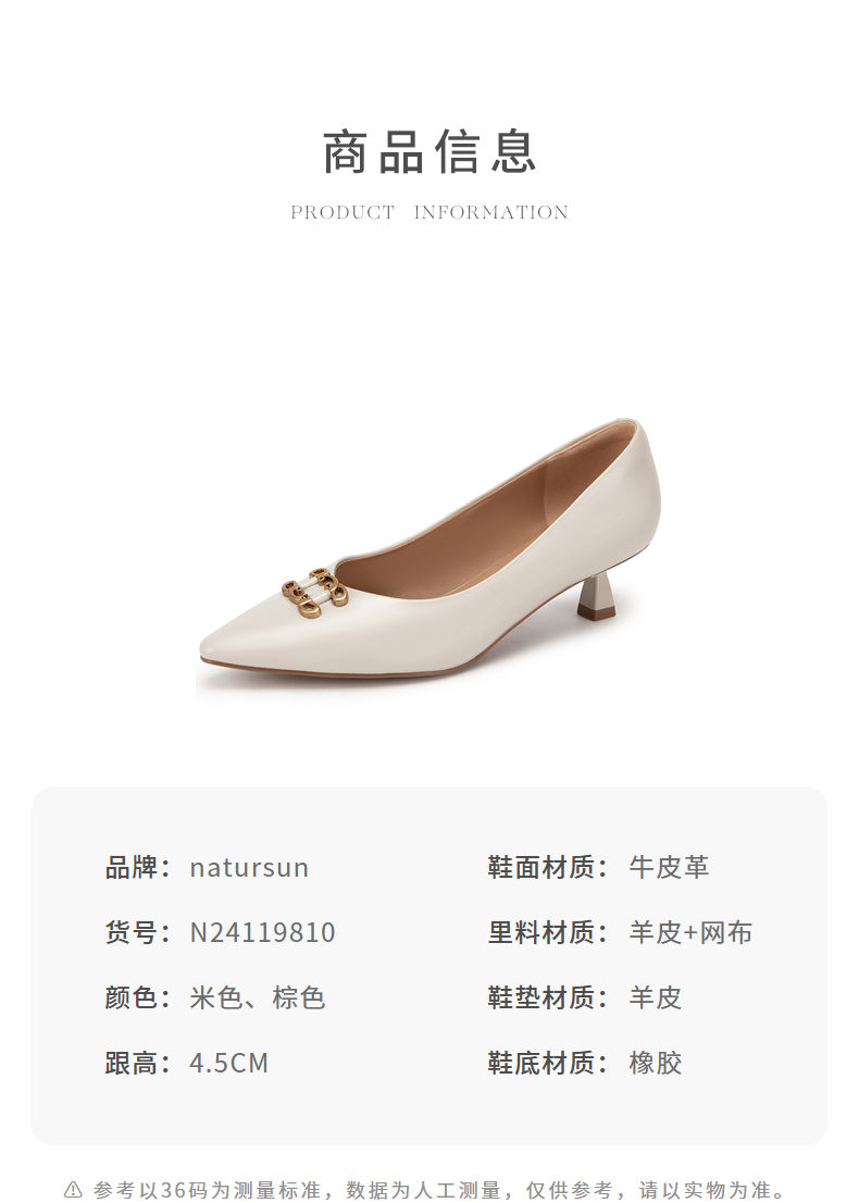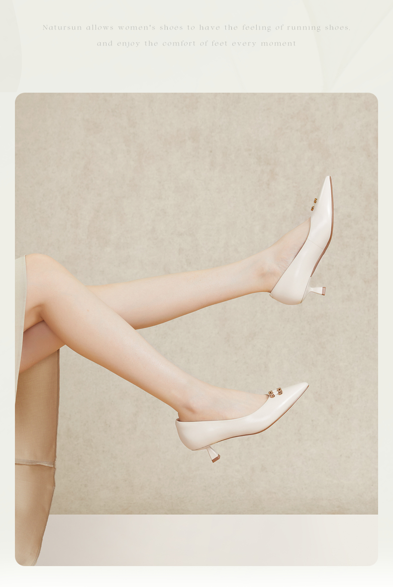 natursun单鞋女春季尖头小香风女鞋软底不累脚细跟高跟鞋N24119810