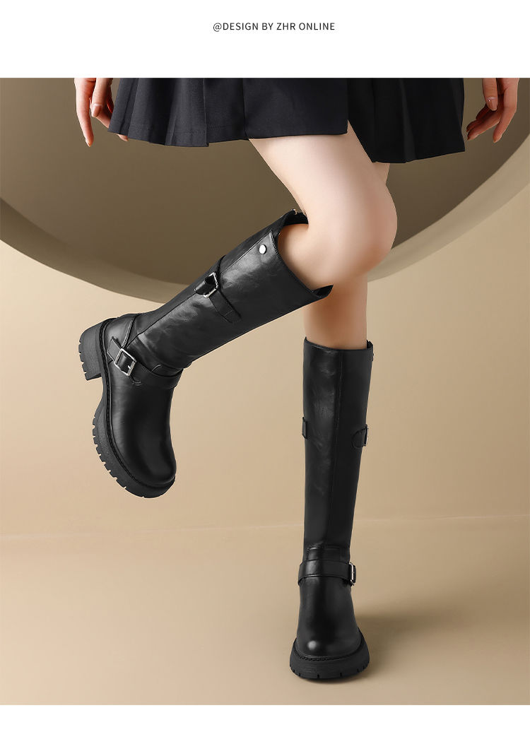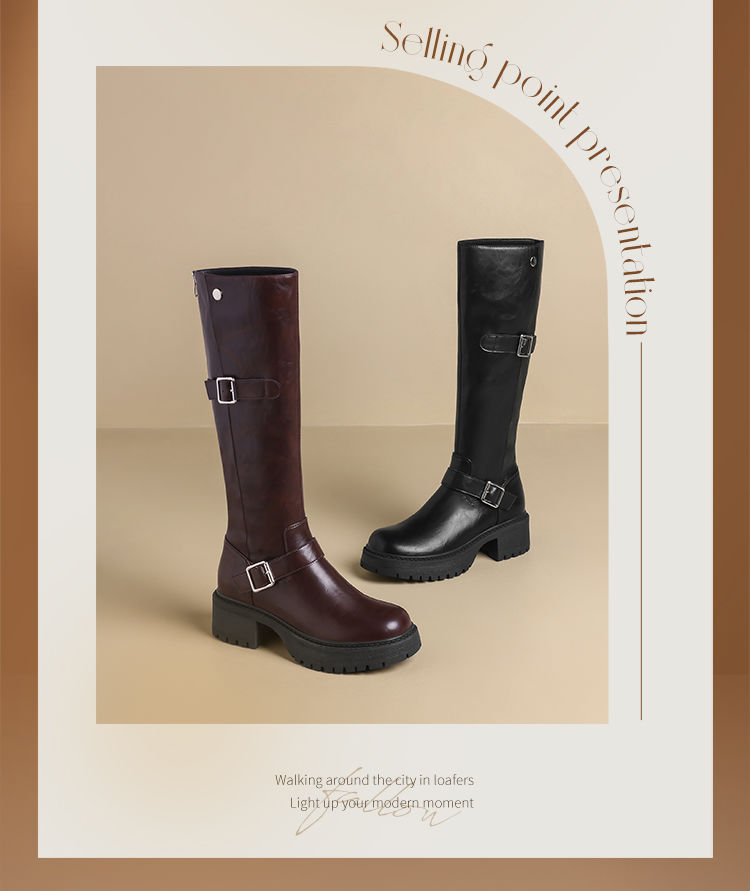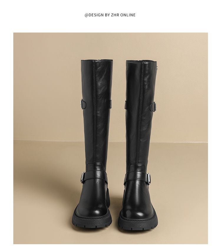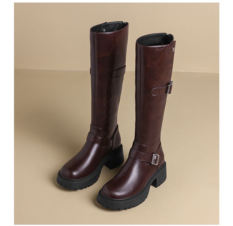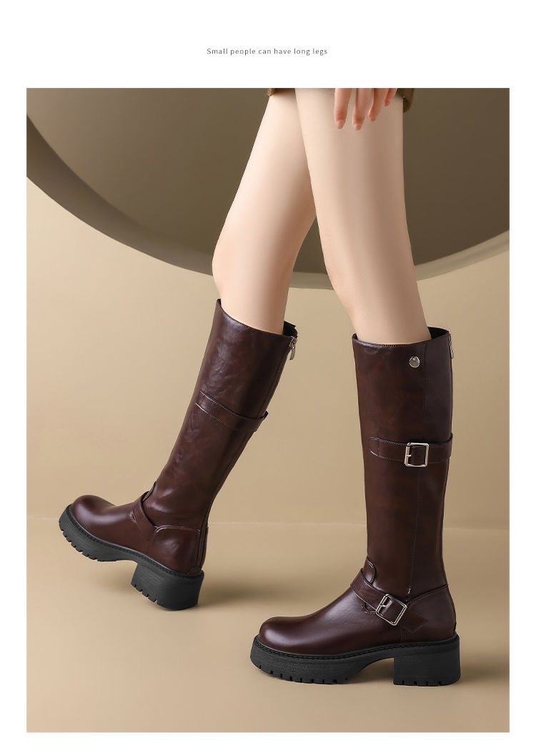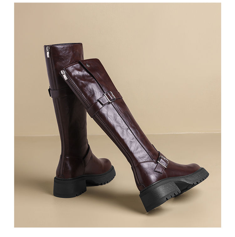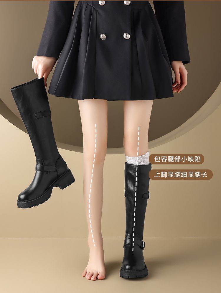 ZHR则则复古美拉德长筒靴女2024新款时尚百搭气质加绒增高瘦瘦靴