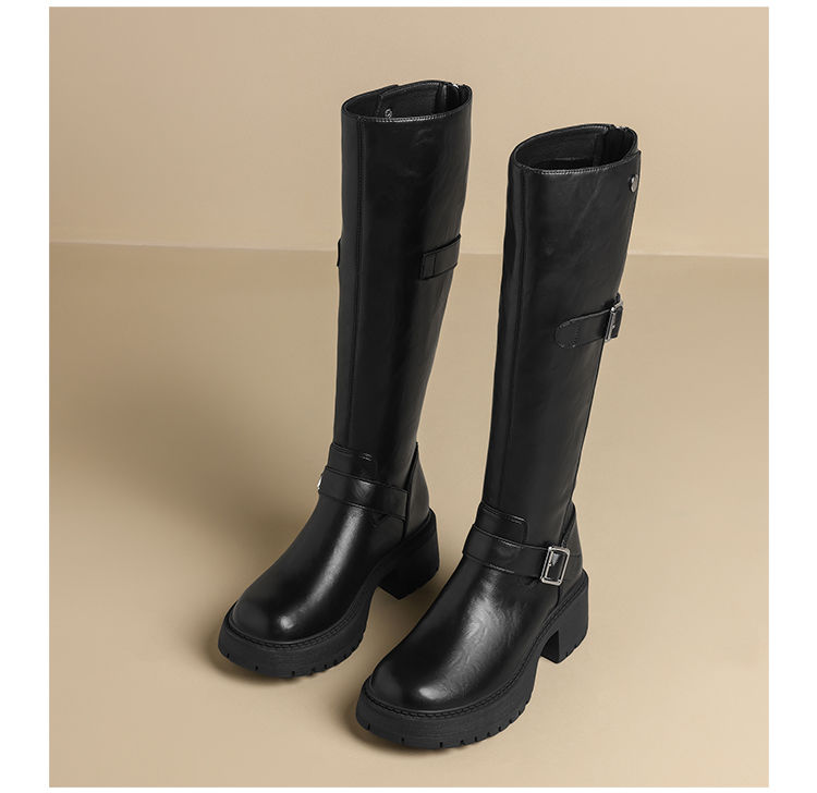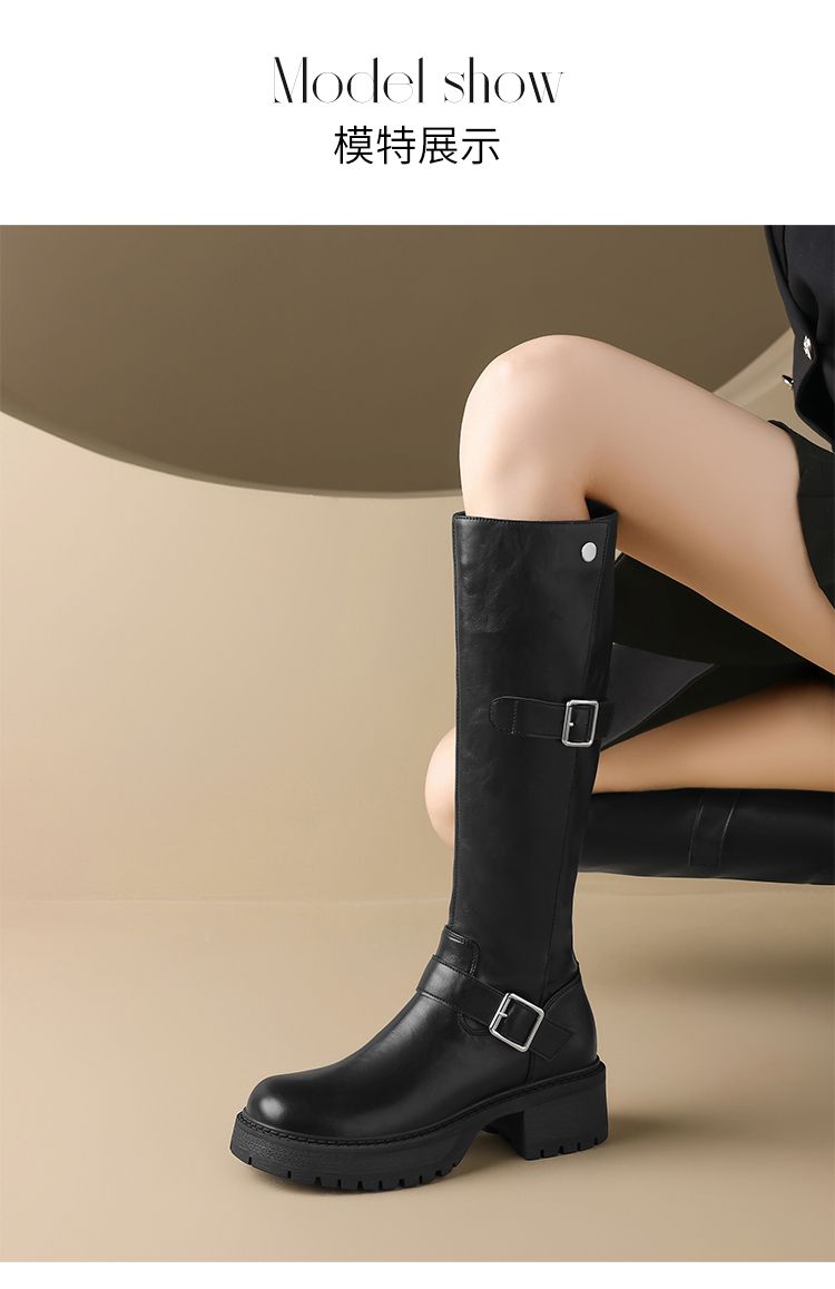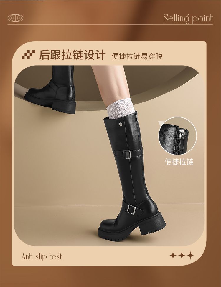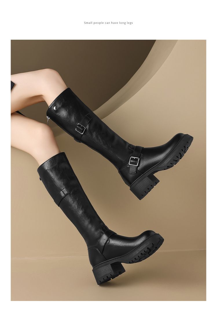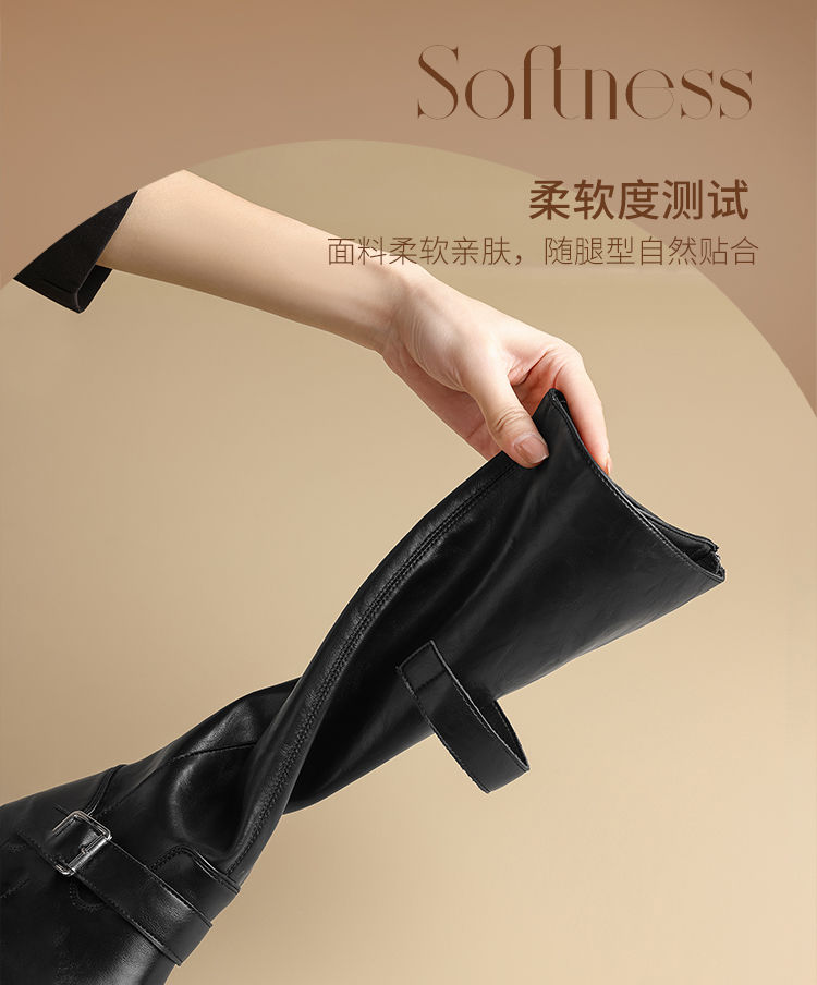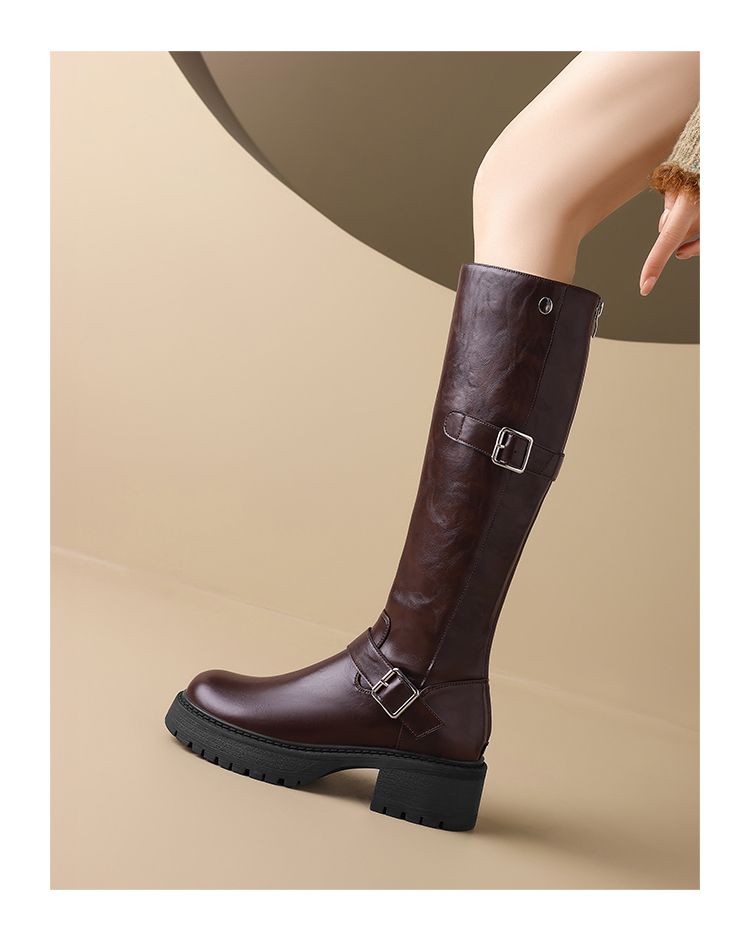 ZHR则则复古美拉德长筒靴女2024新款时尚百搭气质加绒增高瘦瘦靴