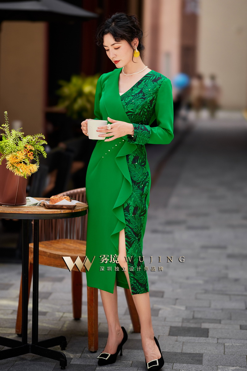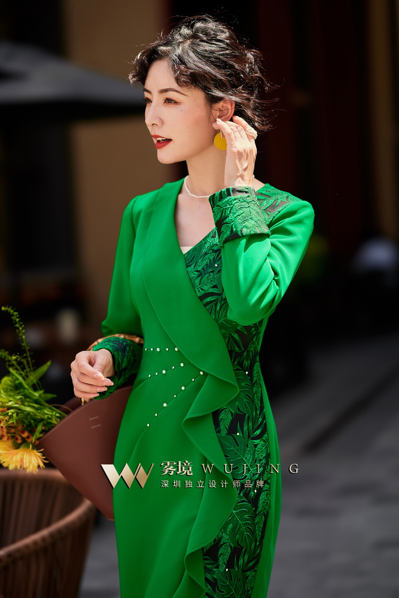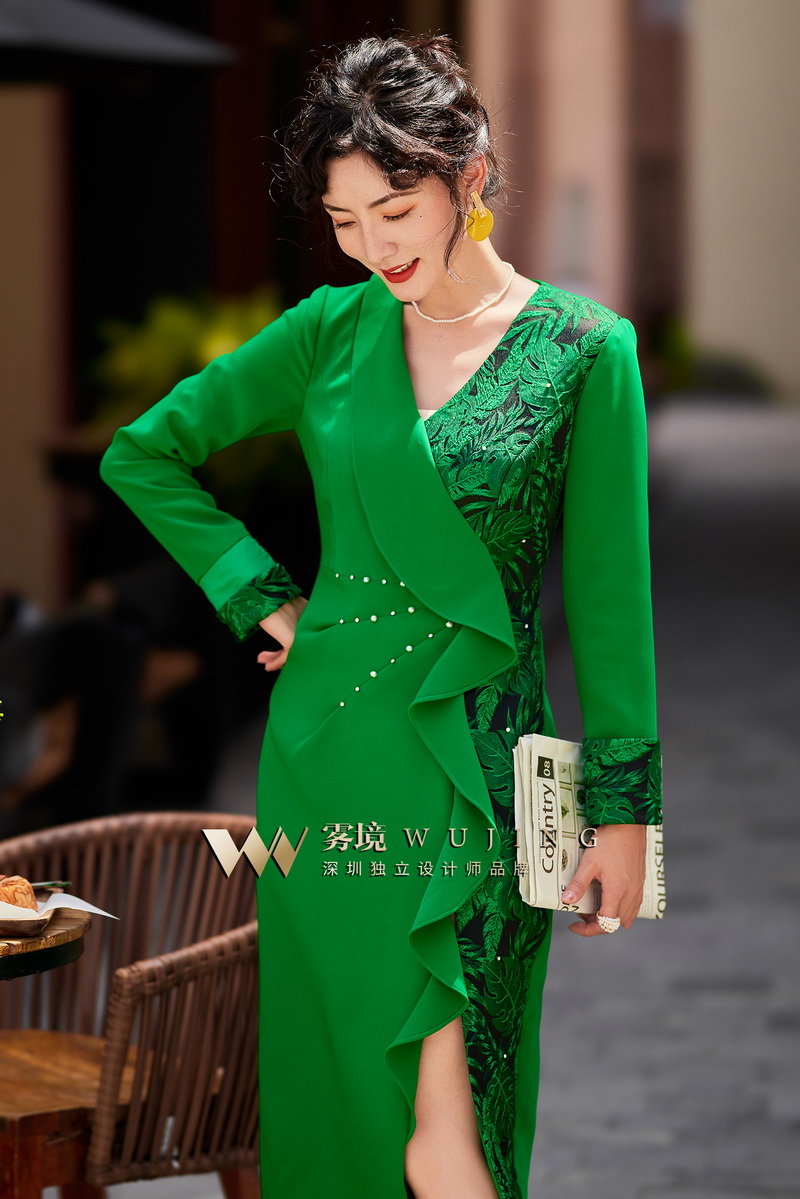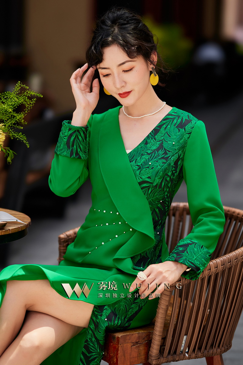 1202074 绿野仙踪 高端斜纹里料,定制提花连衣裙 雾境
