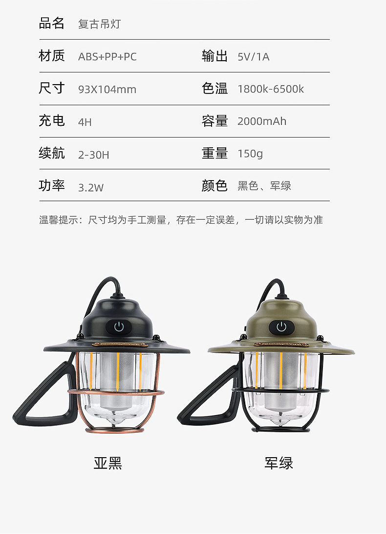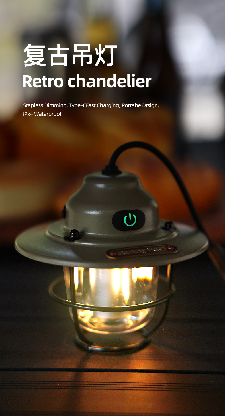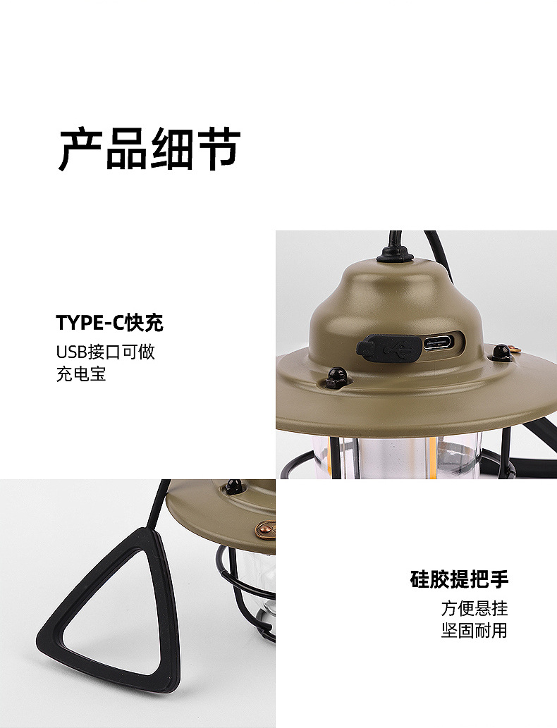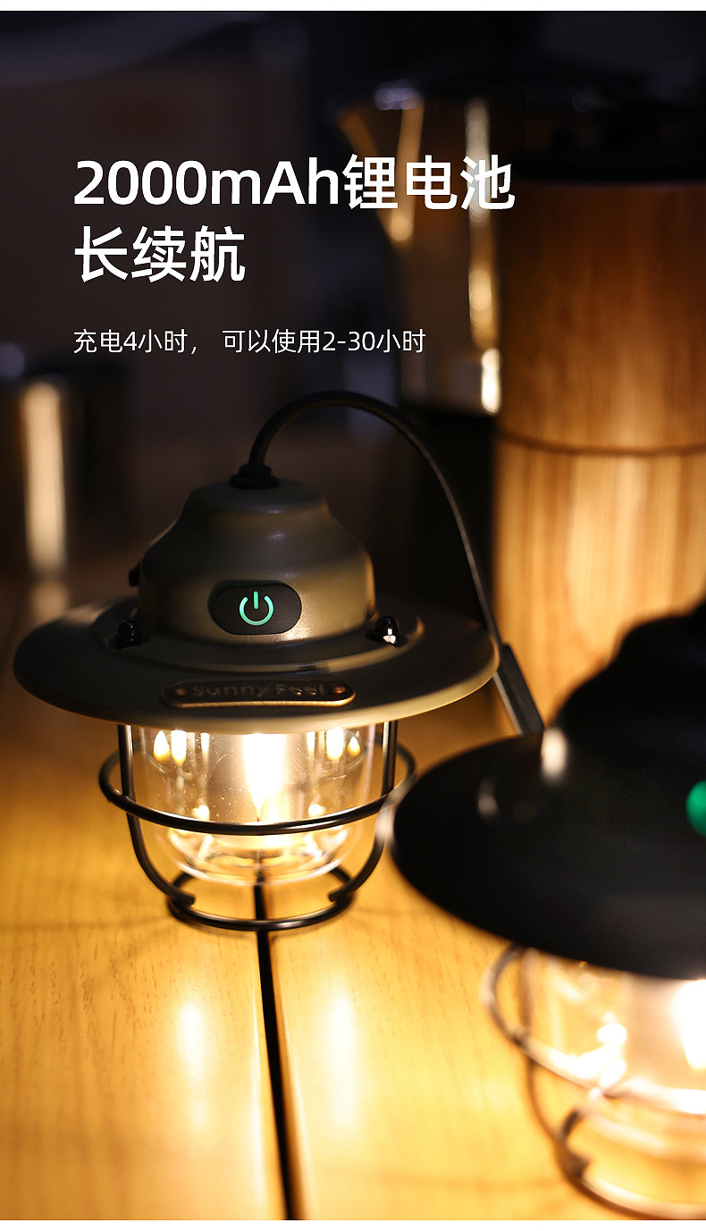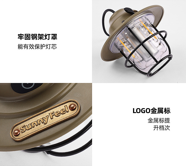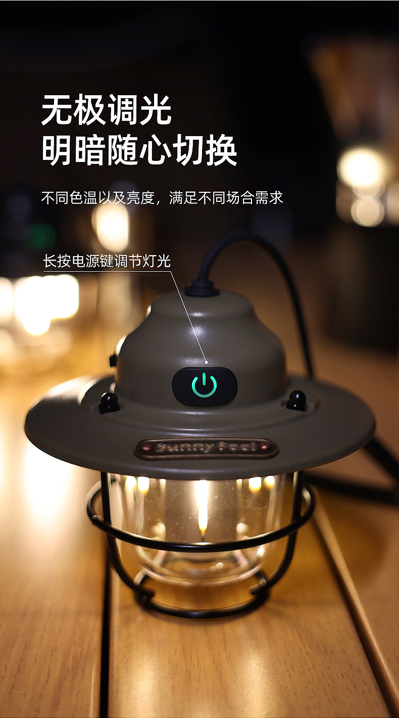 SunnyFeel山扉USB充电手提复古露营氛围灯_LED多功能户外灯野营灯