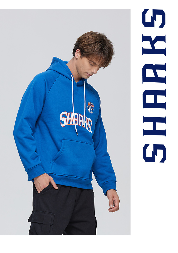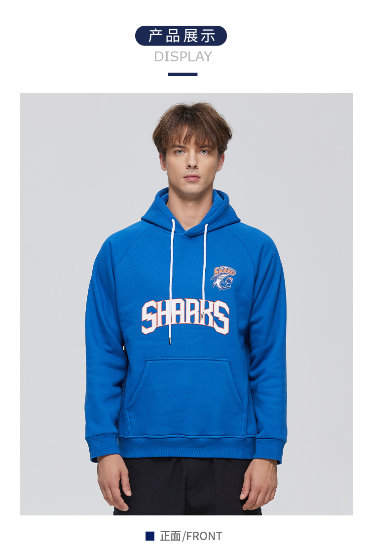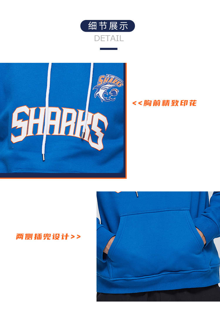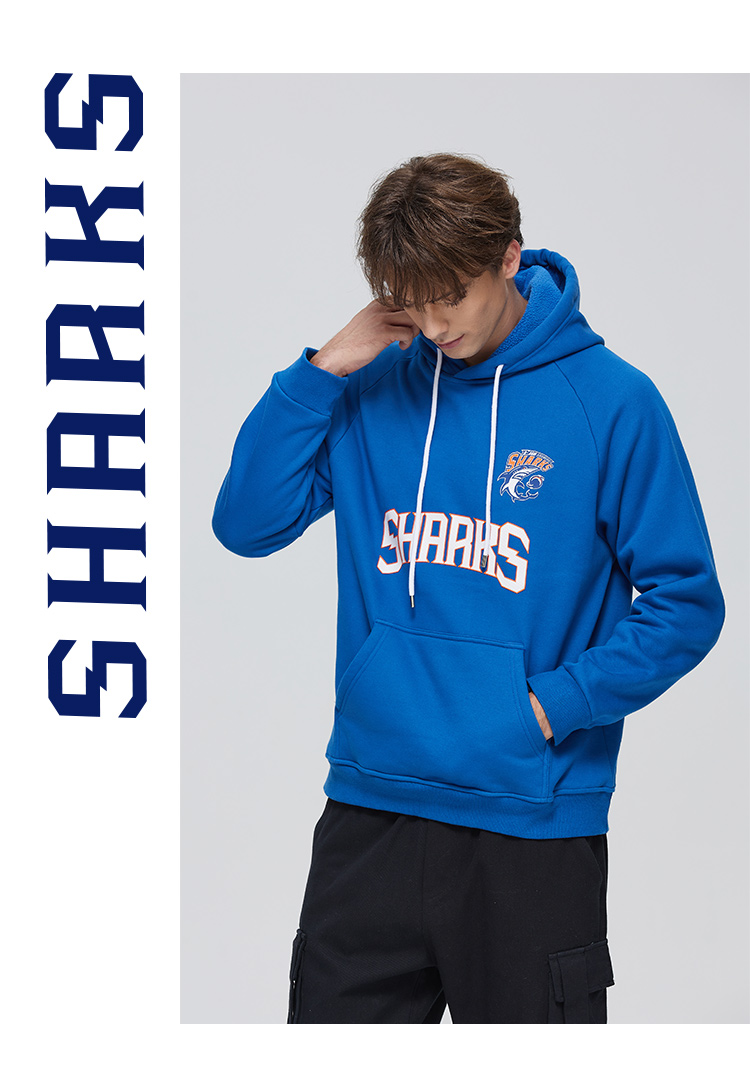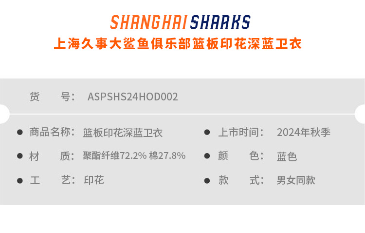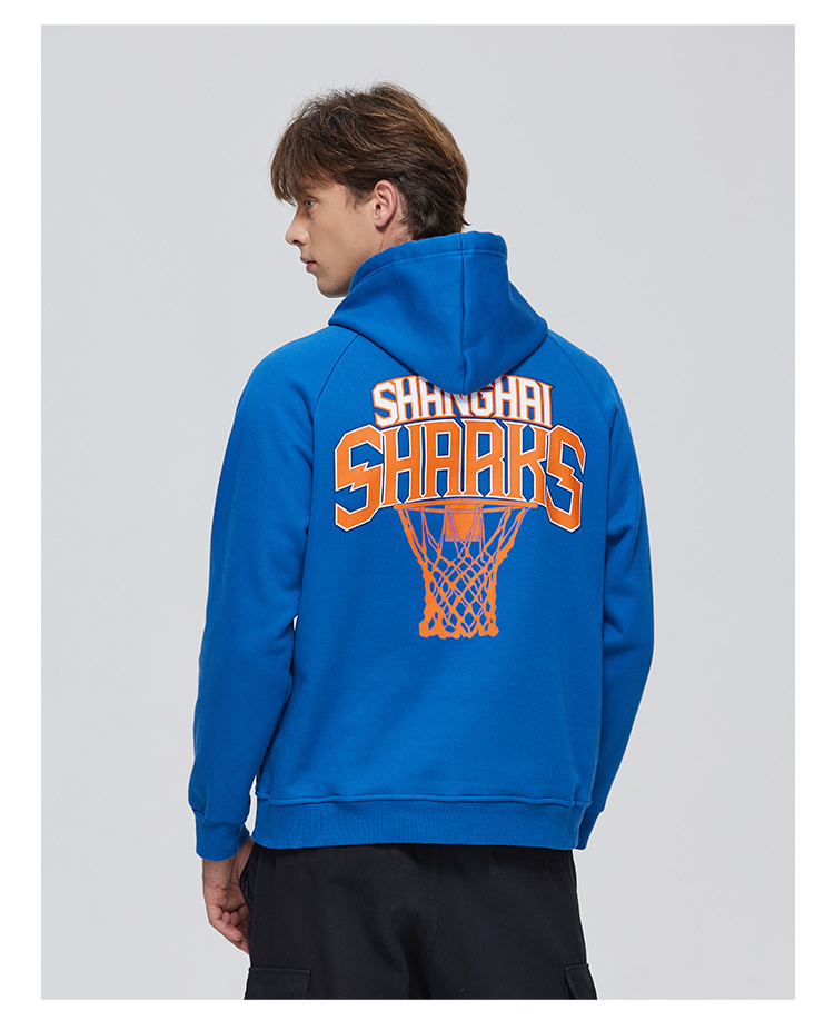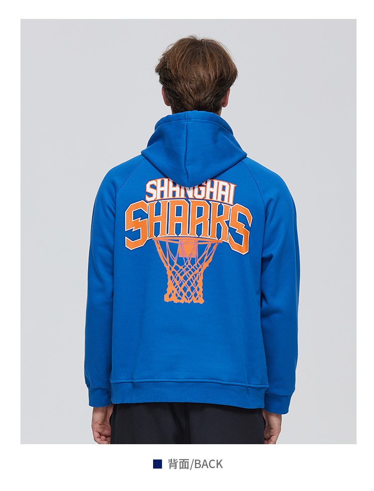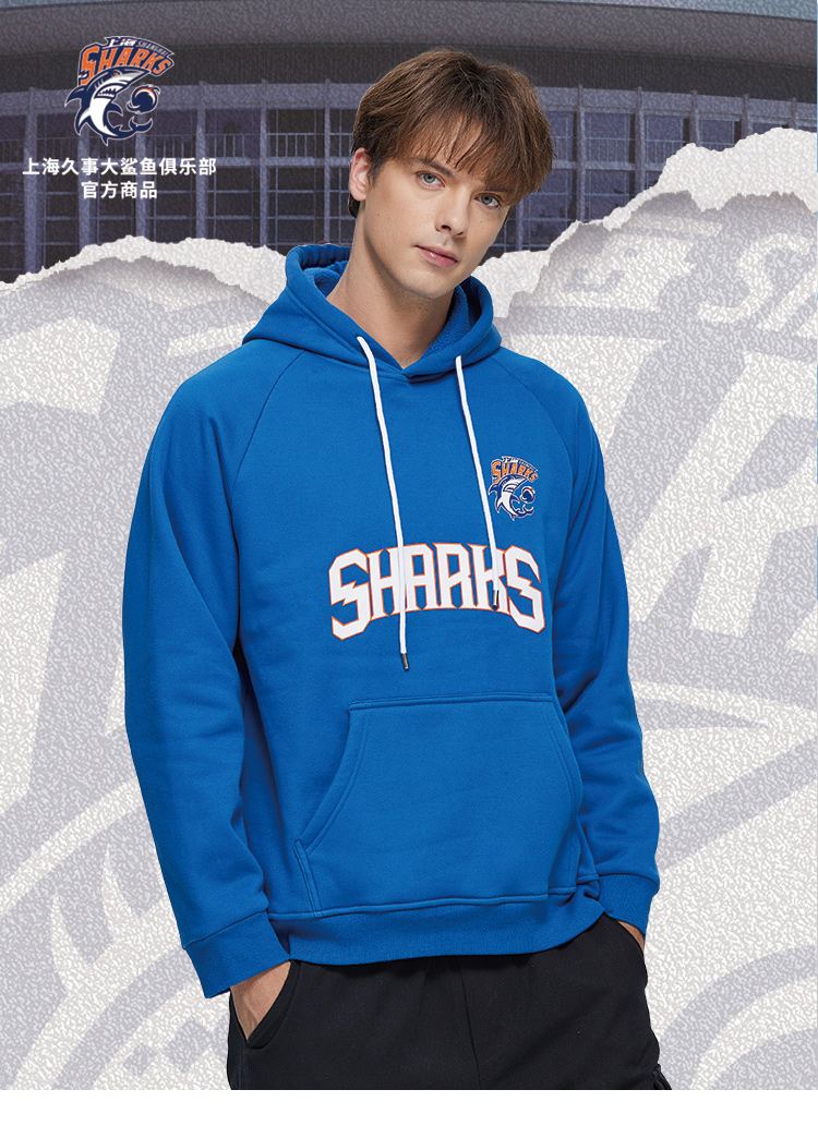 【官方正版】上海久事大鲨鱼俱乐部|秋冬套头酷鲨深蓝篮板手绘印花卫衣