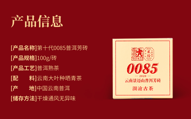澜沧古茶2020年0085芳砖景迈古树普洱茶熟茶熟普云南砖茶茶叶