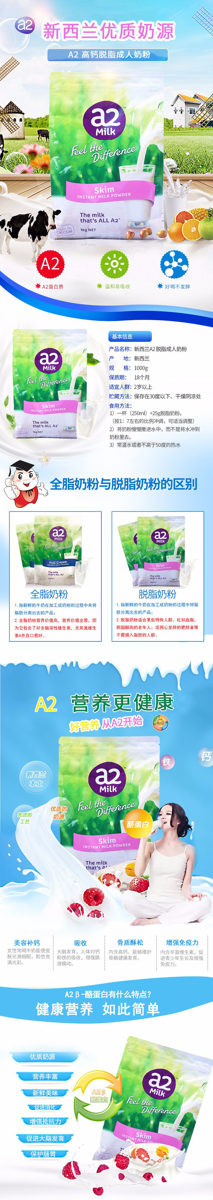【保税】澳洲进口a2蛋白高钙成人奶粉青少年孕妇中老年全家奶粉全/脱脂1kg