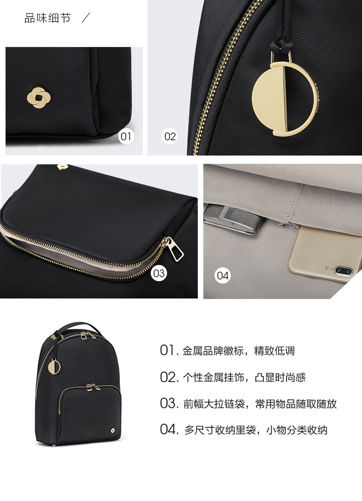 新秀丽极简通勤双肩包女 短途旅行轻便背包电脑包CQ1