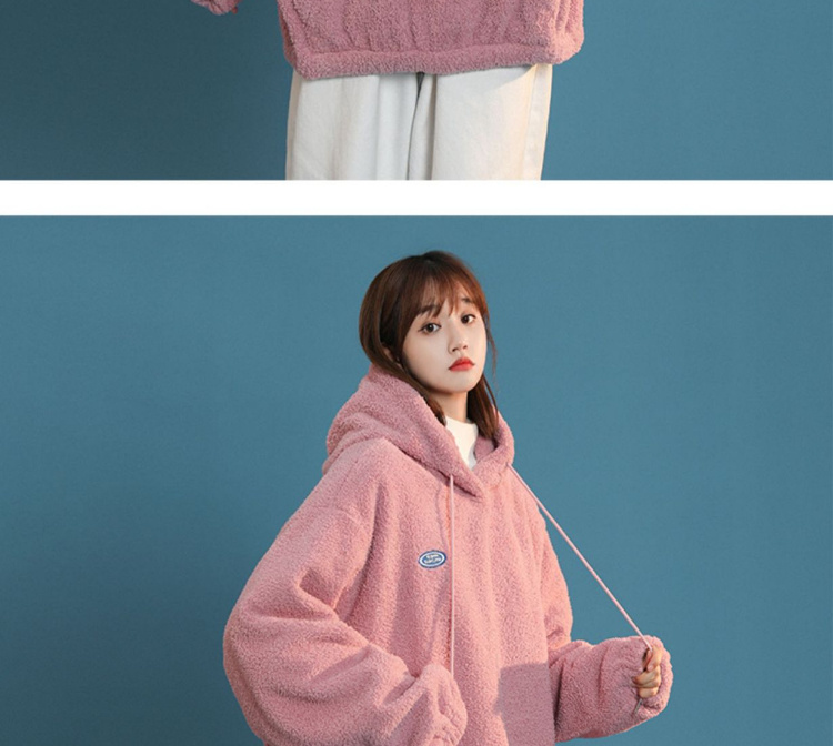 软奶羊羔毛卫衣女秋冬加厚慵懒风外套韩版宽松毛茸茸奶黄色上衣圣诞礼物