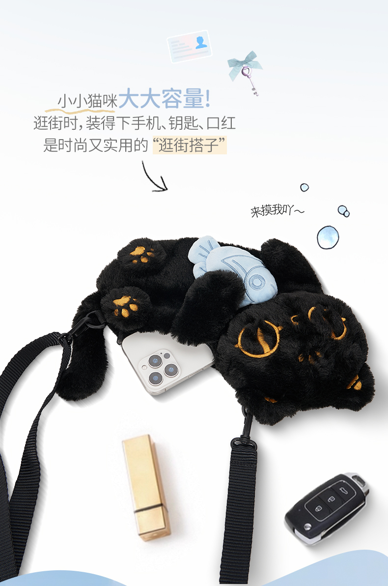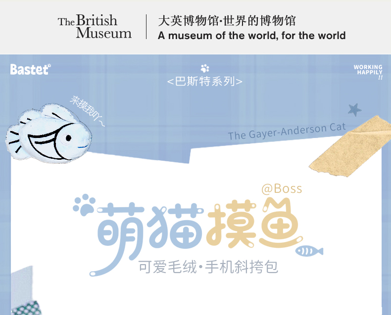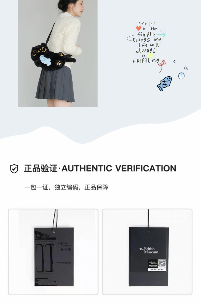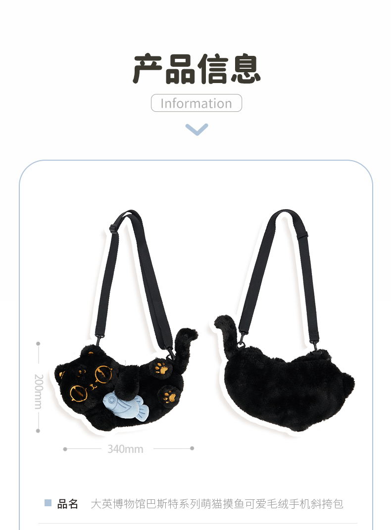 大英博物馆 巴斯特系列萌猫摸鱼 可爱毛绒手机斜挎包