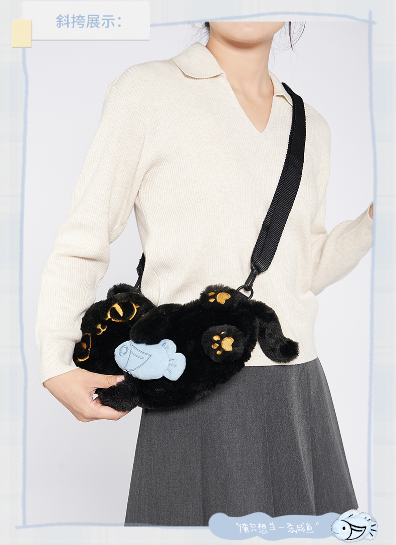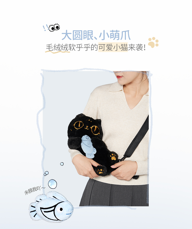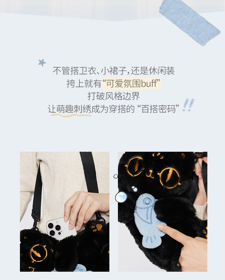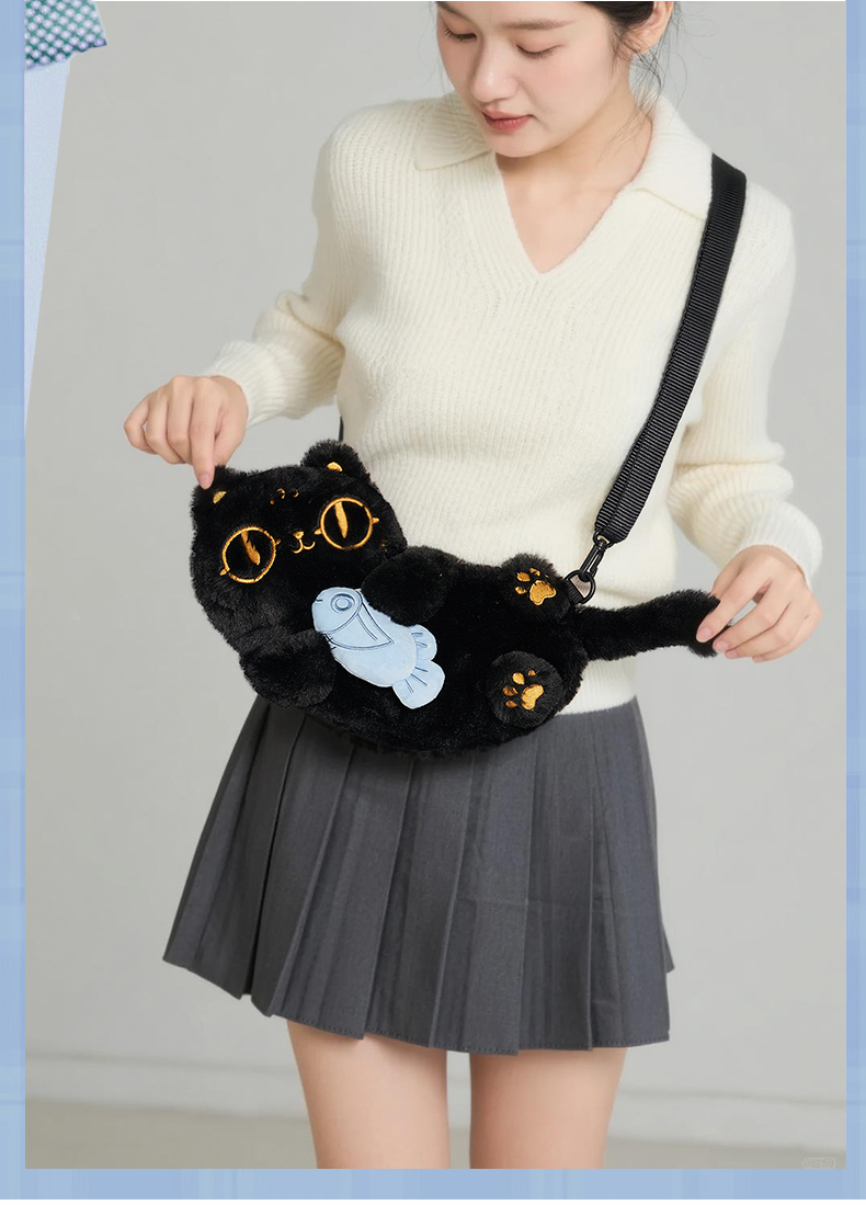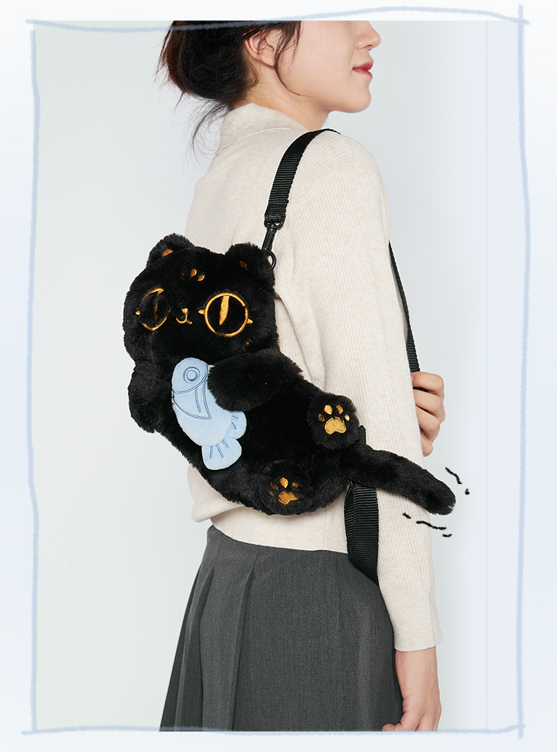 大英博物馆 巴斯特系列萌猫摸鱼 可爱毛绒手机斜挎包