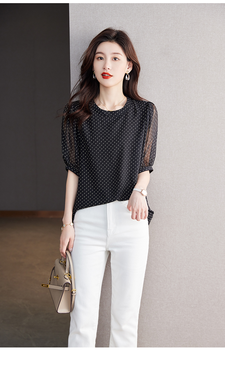 新款雪纺衫宽松小个子别致漂亮小衫遮肚上衣CC-JA5012