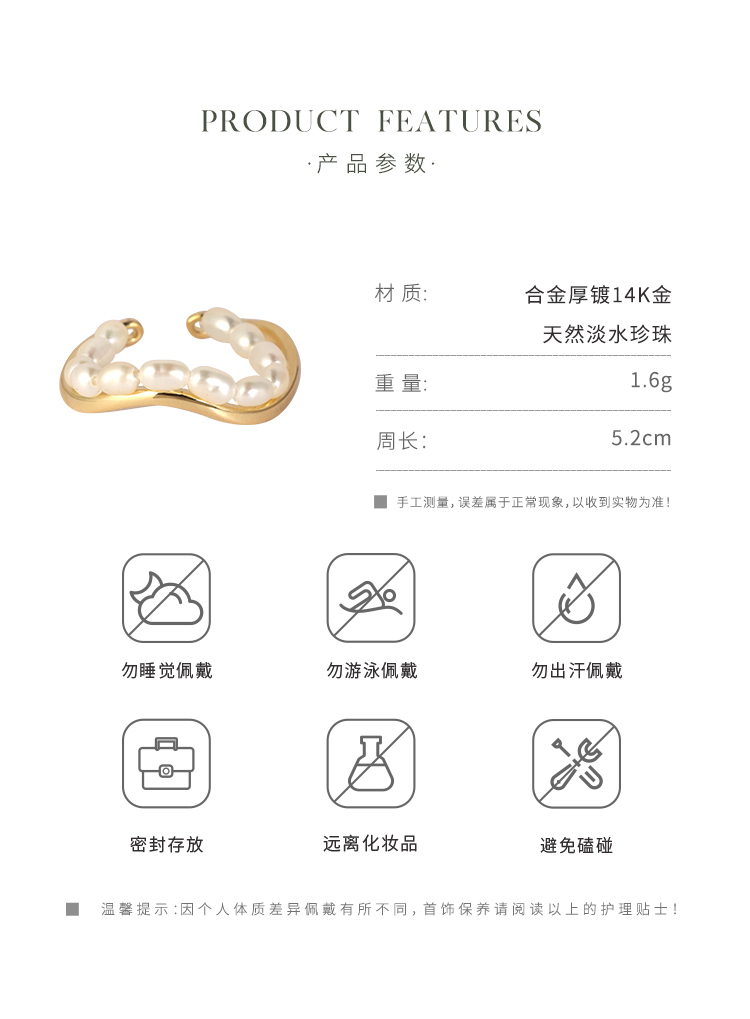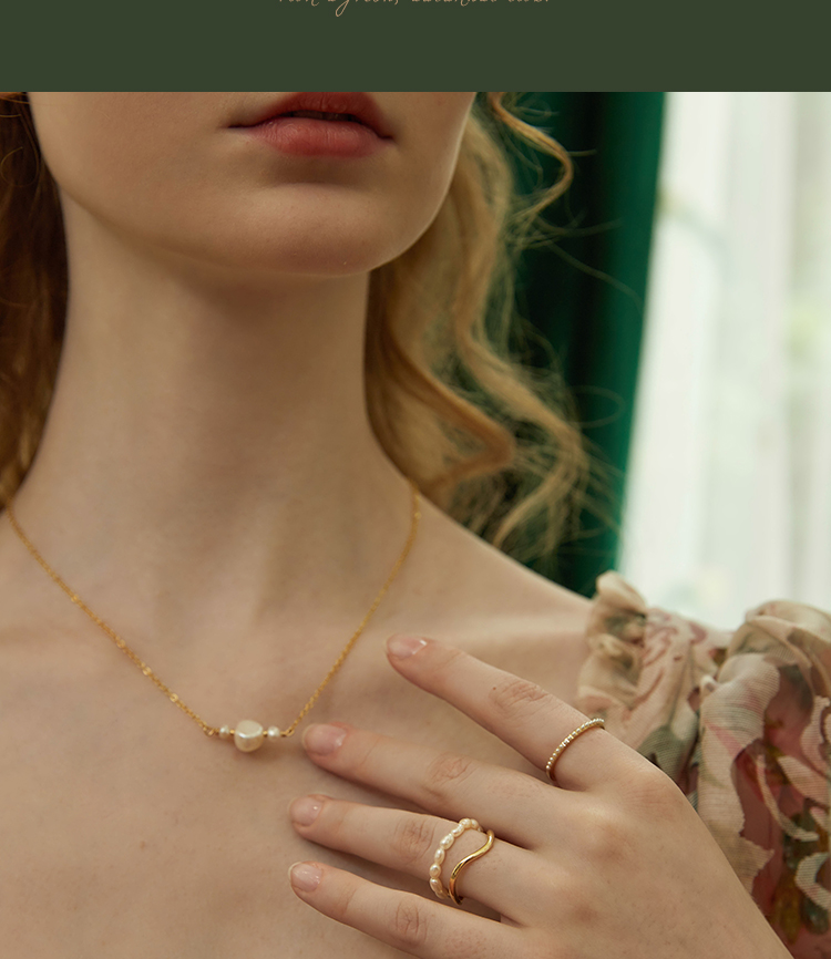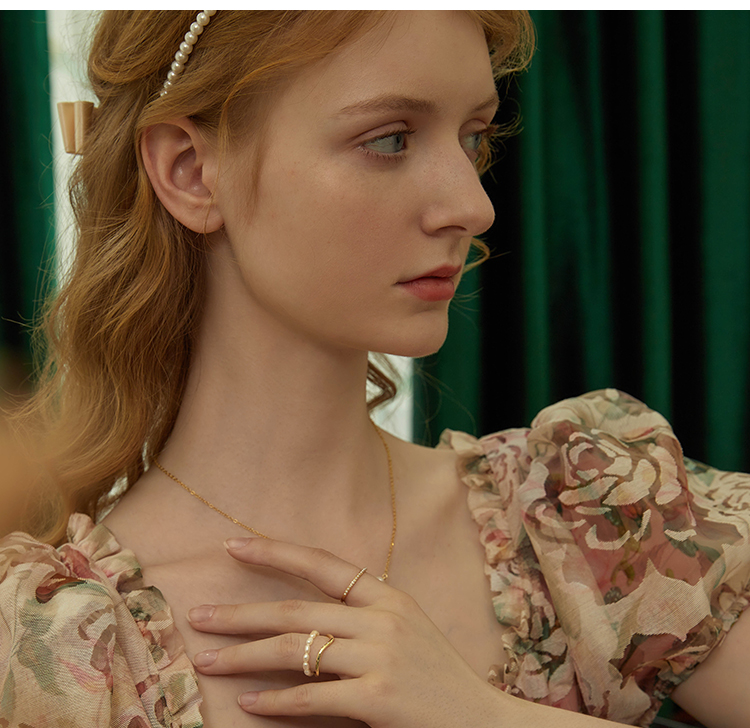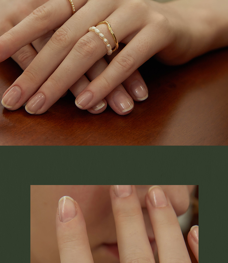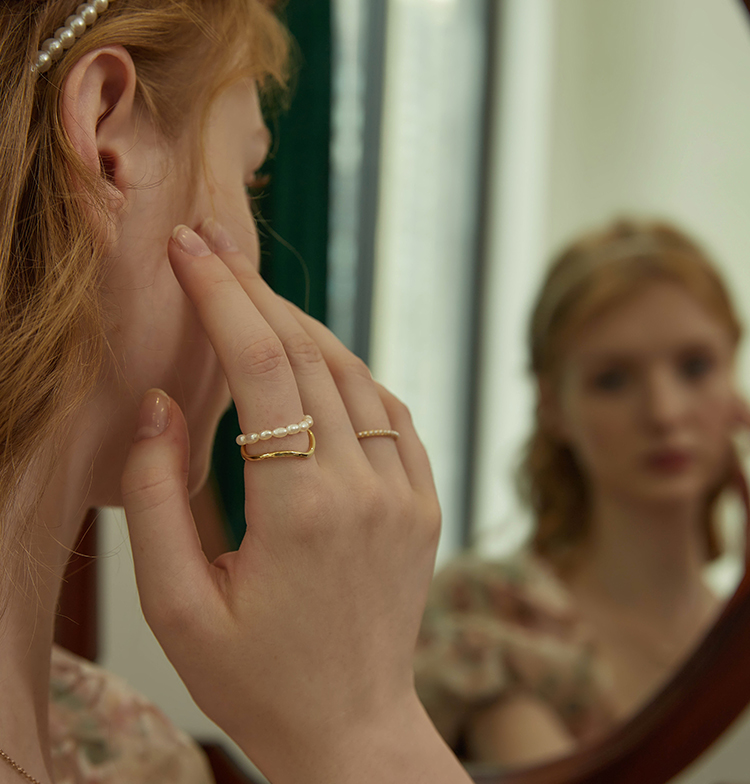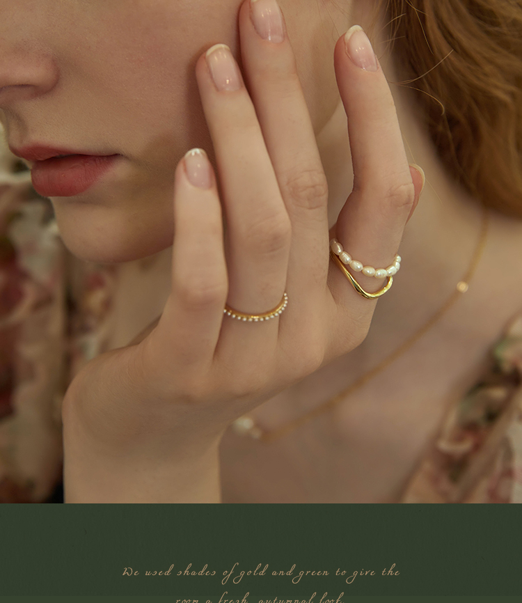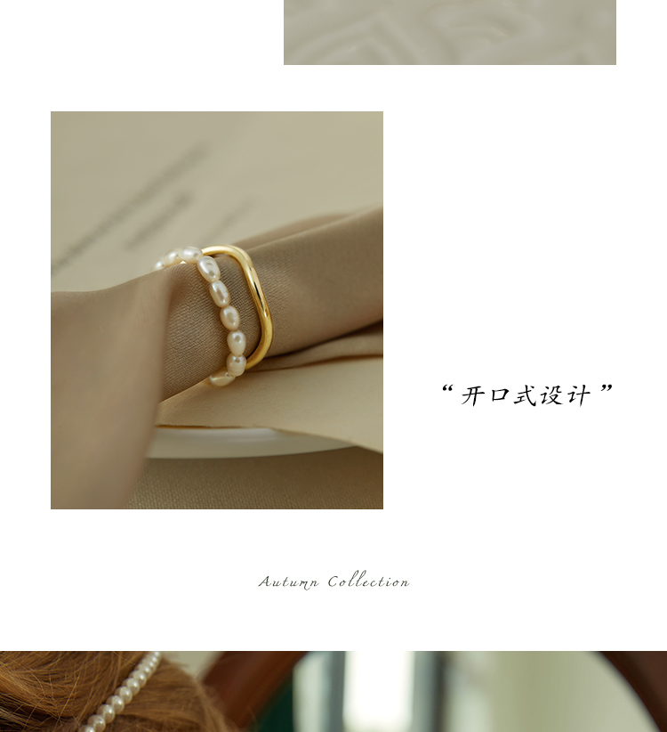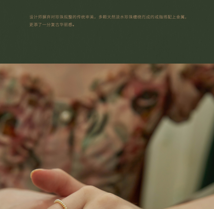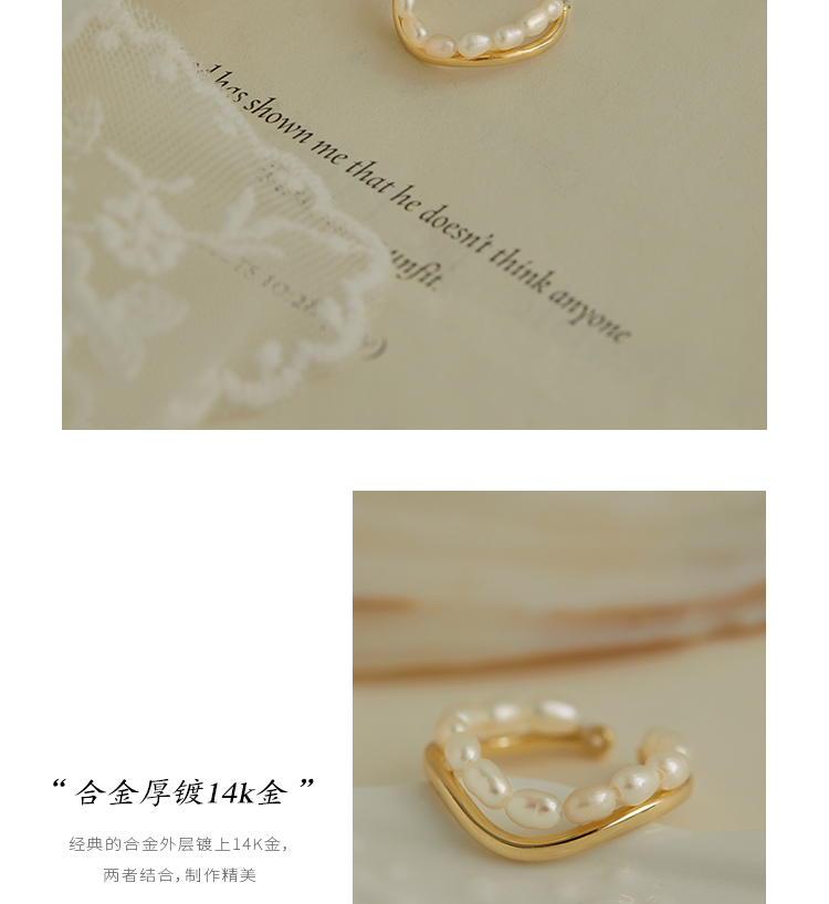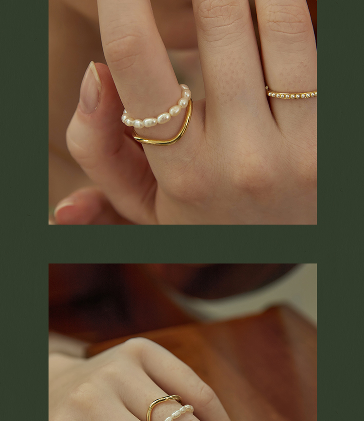 Oflye潮流饰品 双层珍珠链条戒指复古港式不规则叠戴食指戒小众饰品