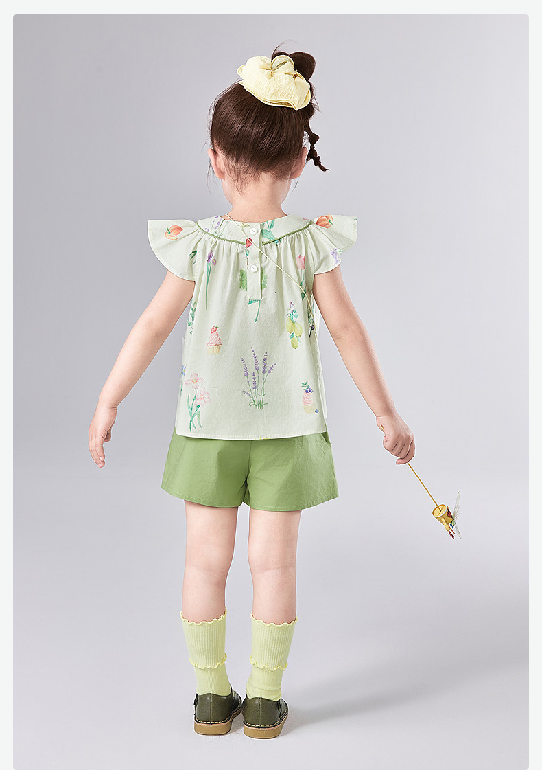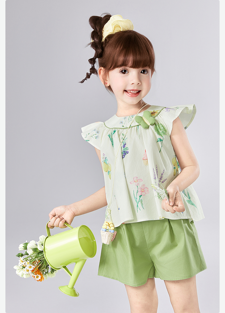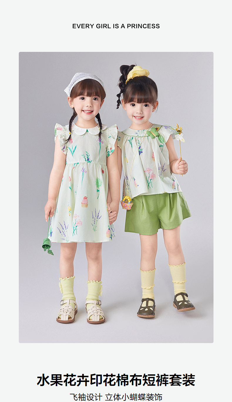 笛莎Deesha 童装女童套装2025夏新款女童水果花卉印花棉布短裤套装