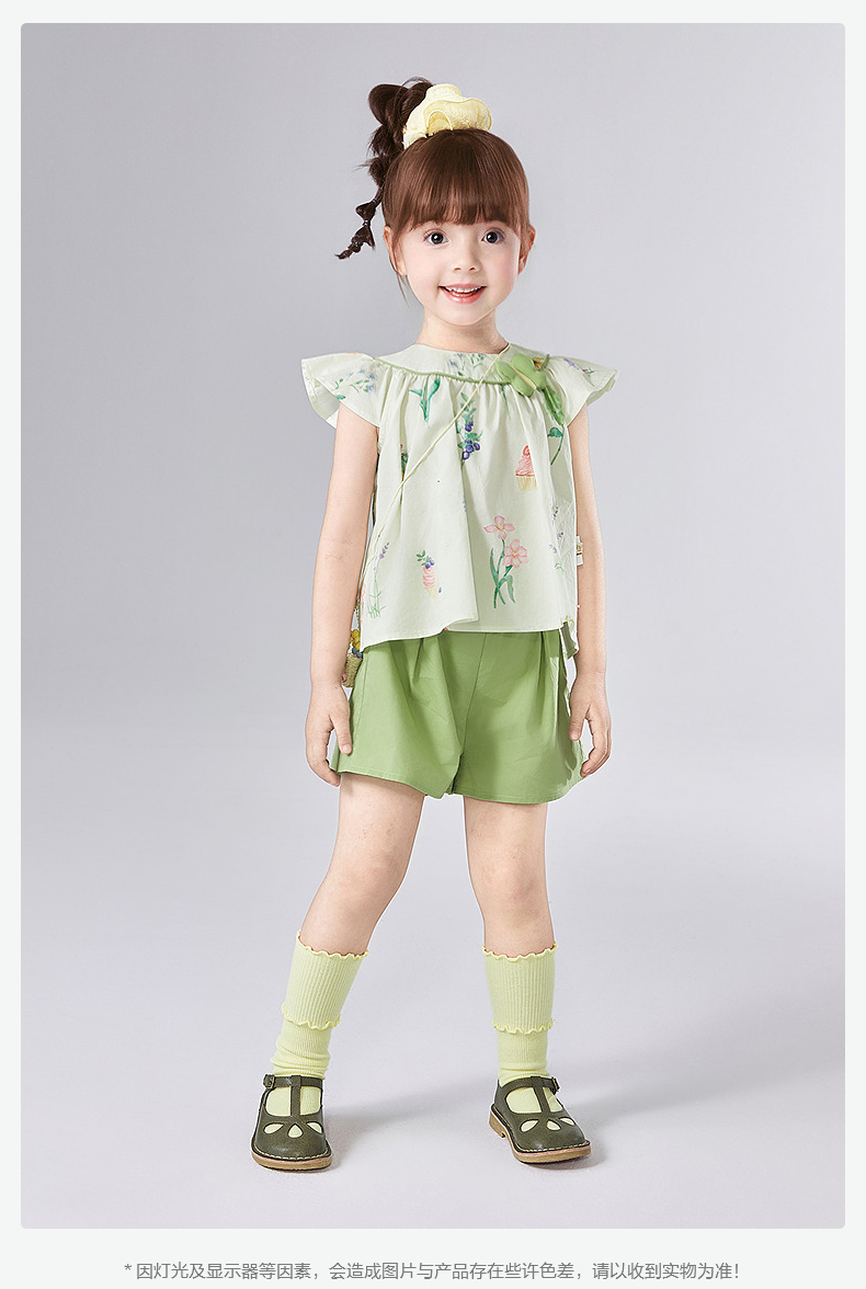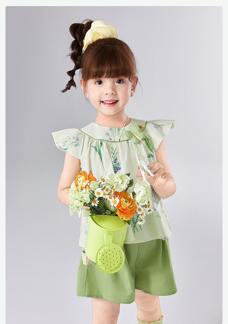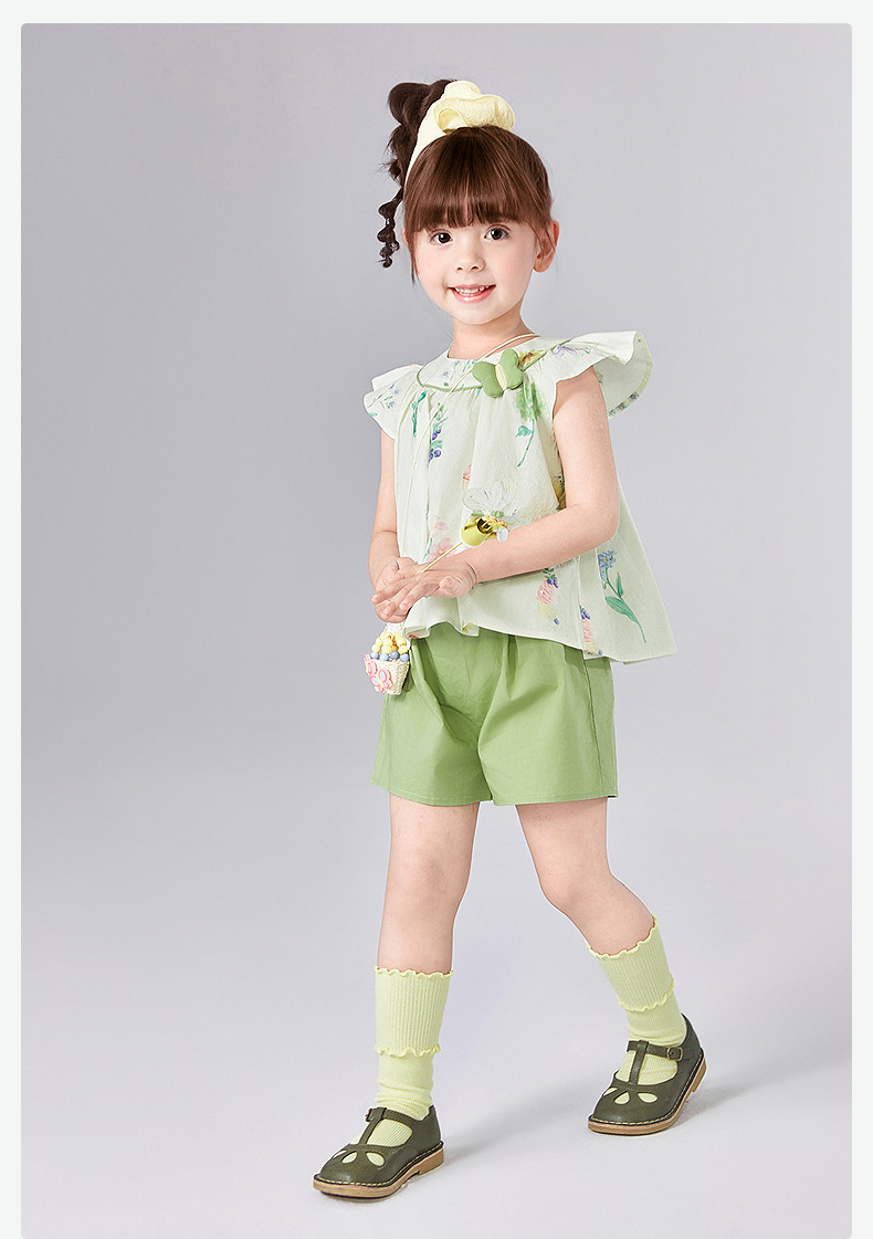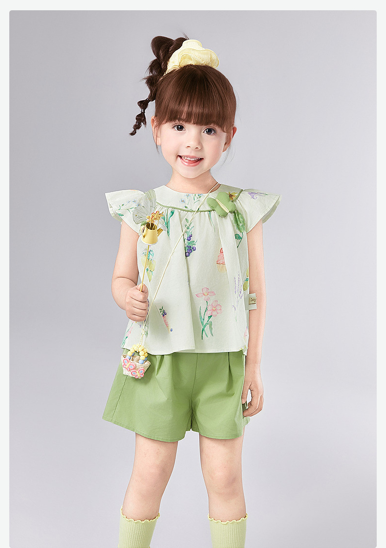 笛莎Deesha 童装女童套装2025夏新款女童水果花卉印花棉布短裤套装