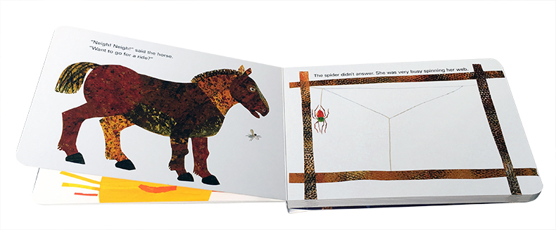 Early one morning a little spider begins to spin her web on a fence post. In this multi-sensory book, children can feel the pictures as well as see them, while they hear or read the easy rhythmic text. Alongside the visual excitement of Eric Carle's vibrant collages of familiar animals is the tactile experience of feeling the spider's web as it grows from a simple line into a complex and beautiful creation - a perfect story for reading aloud and sharing.