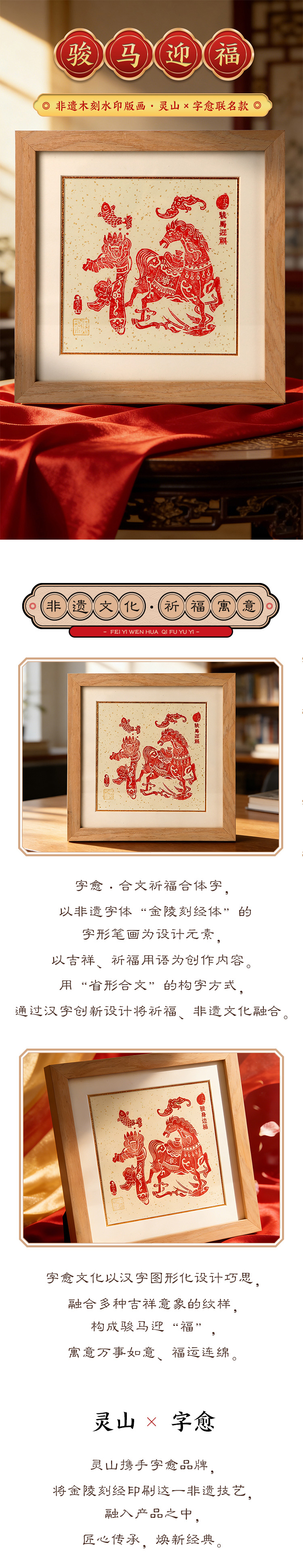《骏马迎福》非遗木刻水印版画·灵山×字愈联名款