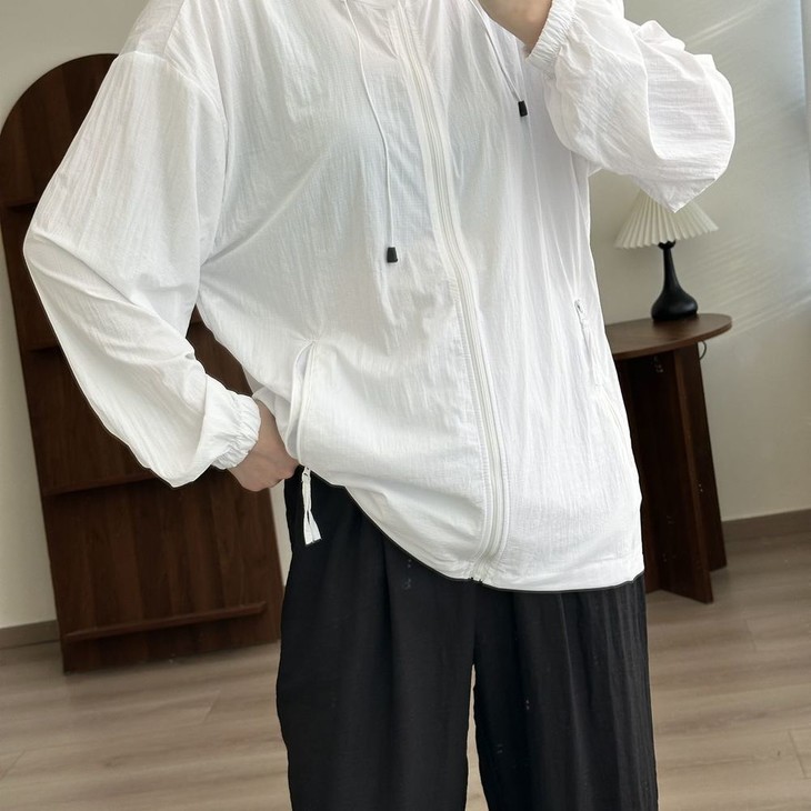 它不是紧身型的,所以搭配上更不设限,也不分性别的好穿。 觉得自己上半身肉肉多的朋友,选这种版型的防晒衣绝对没错,它可以轻松遮住你上半身的赘肉,让你看上去纤瘦不少~