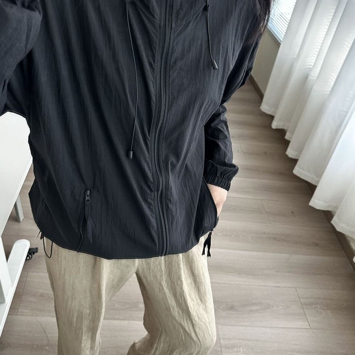 而且这件防晒衣是用锦纶制作而成的,不仅防紫外线效果好,还更轻薄透气。