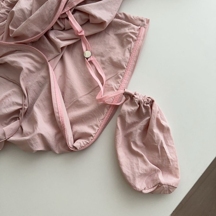 同时,防晒衣还用了巧妙的设计 配置收纳袋💼 出门放包里,不占空间~ 方便携带~ 下面简单的录了一个装袋视频 手把手教你如何将防晒衣收纳