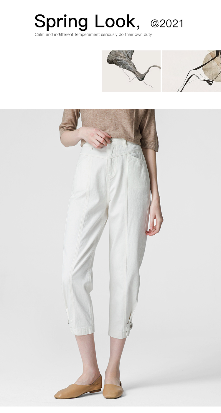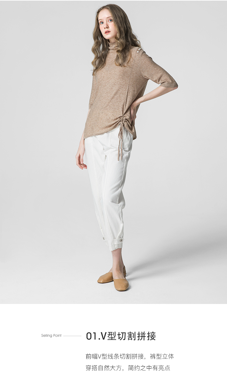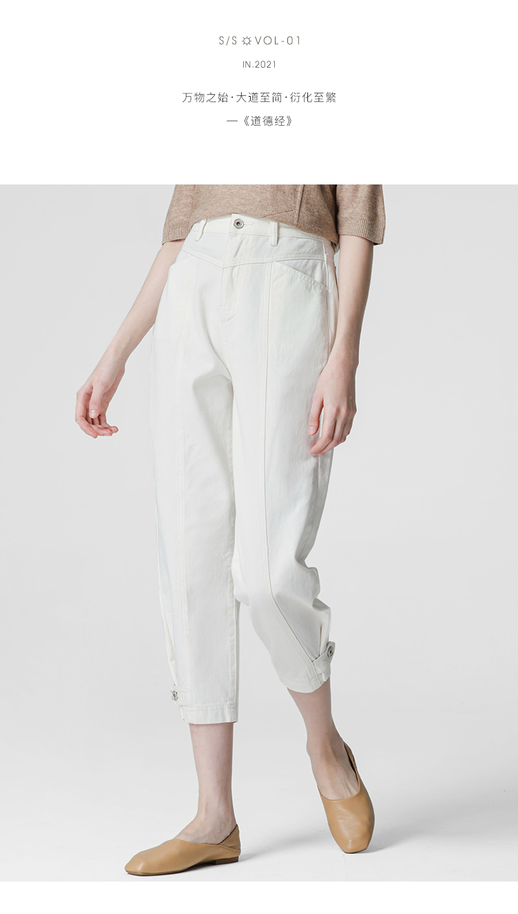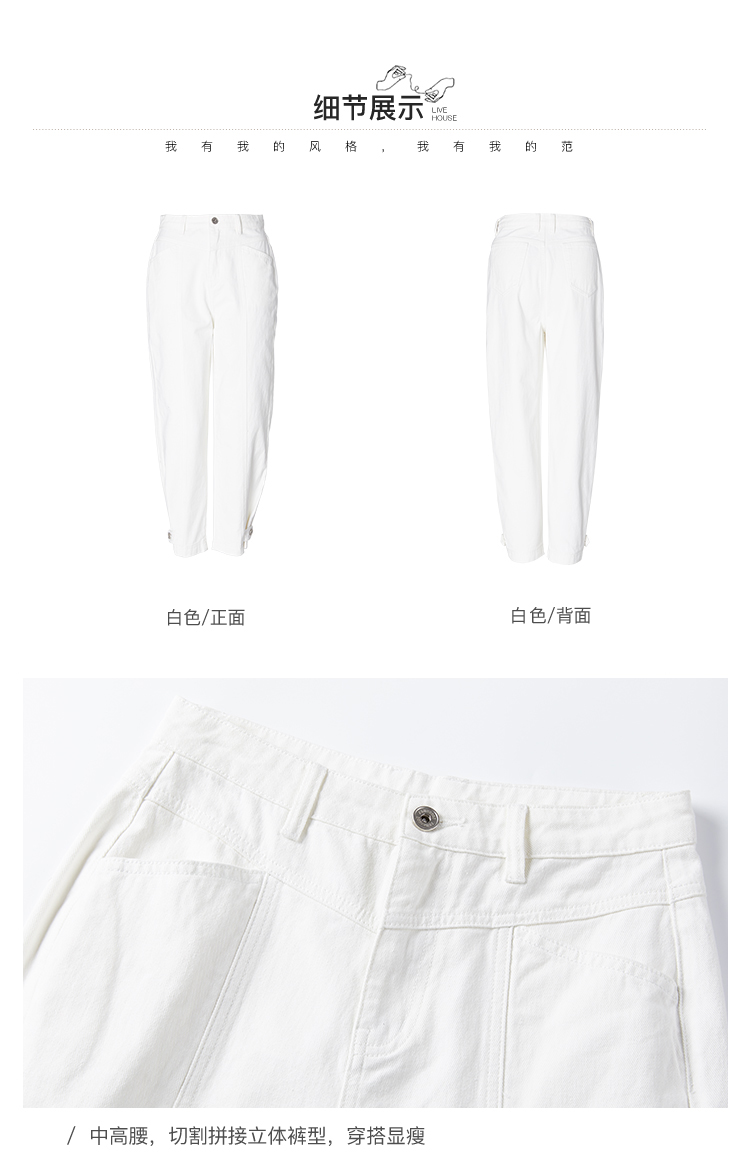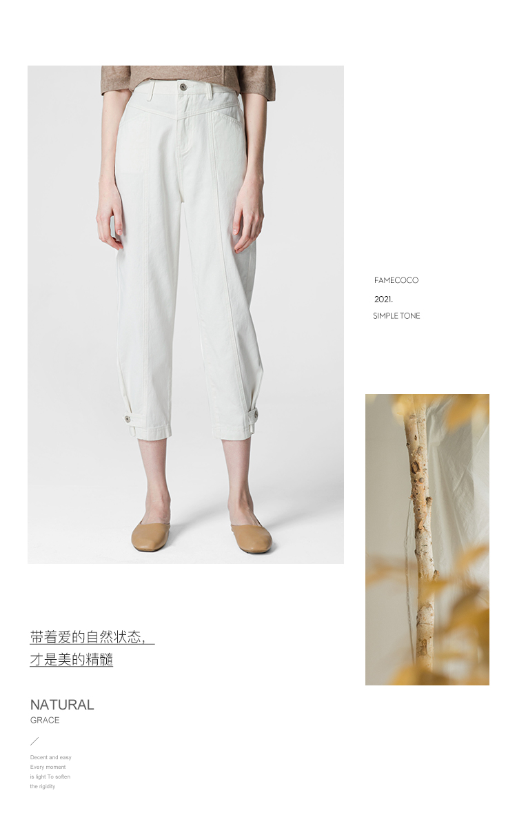 famecoco范可儿白色裤子女宽松显瘦百搭休闲裤F211GA006