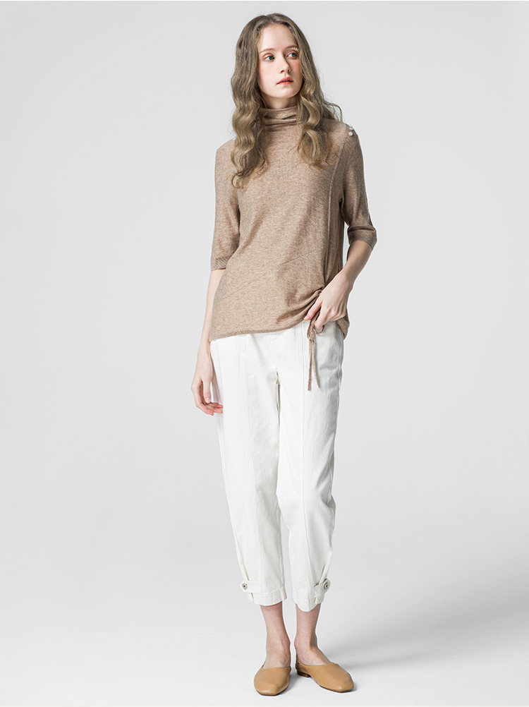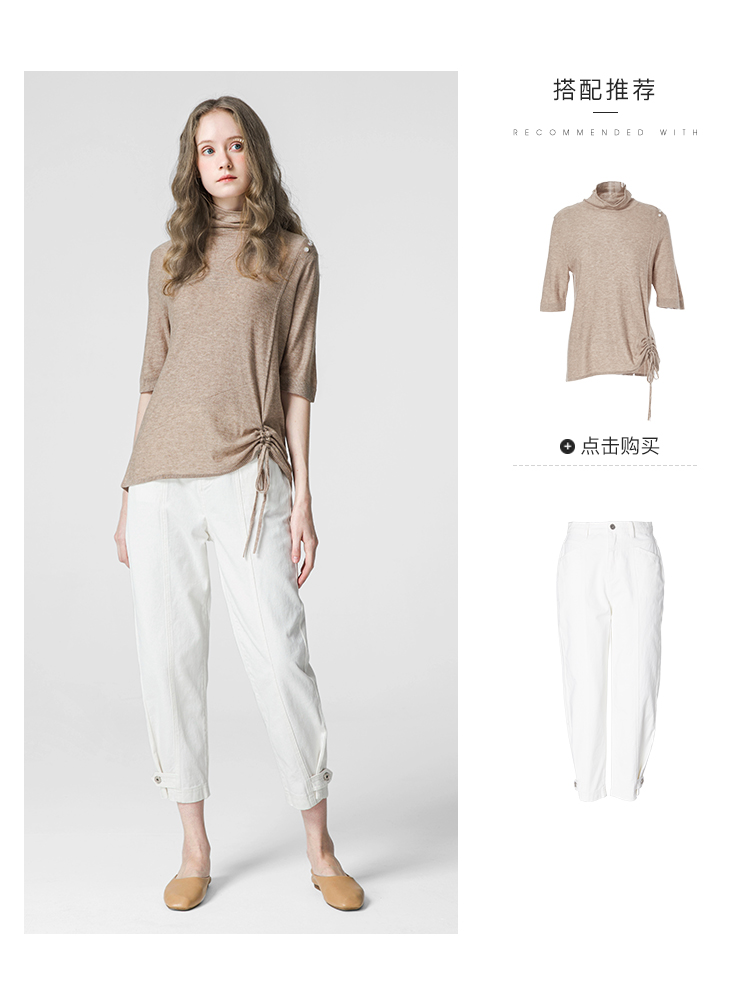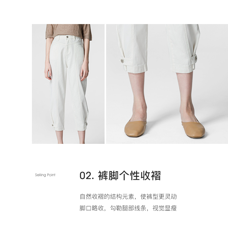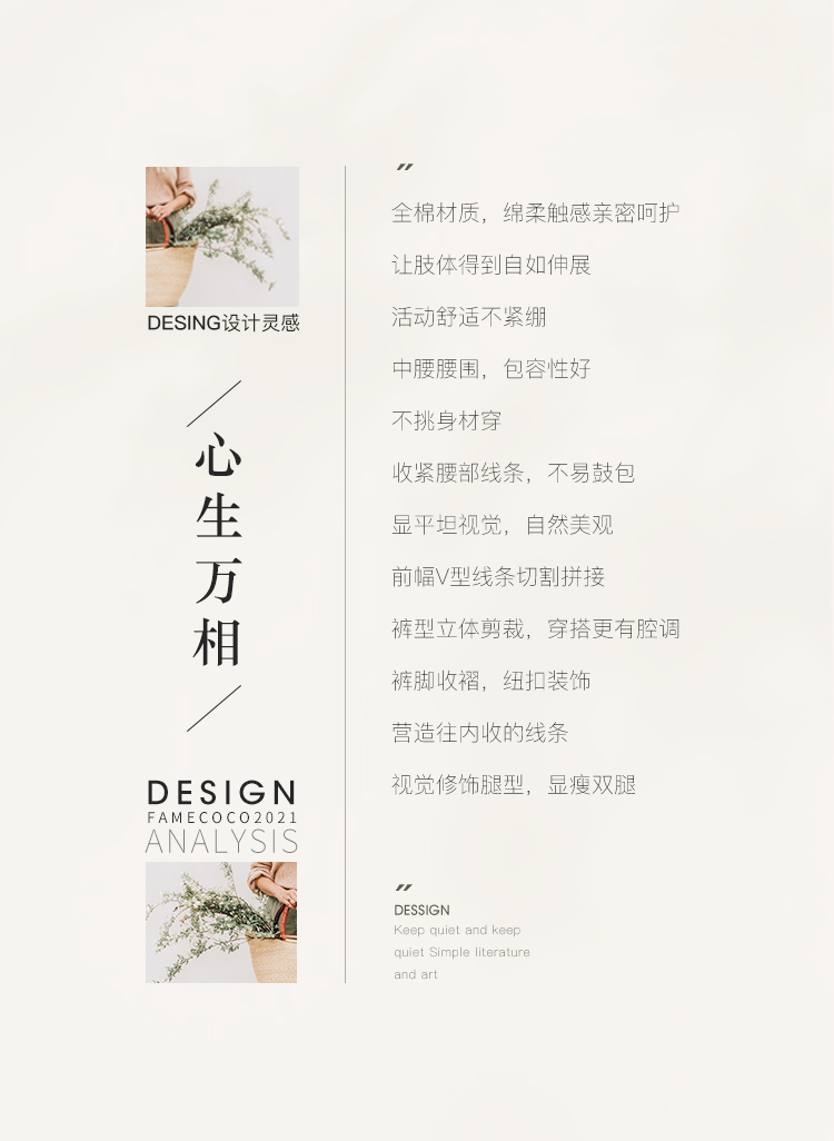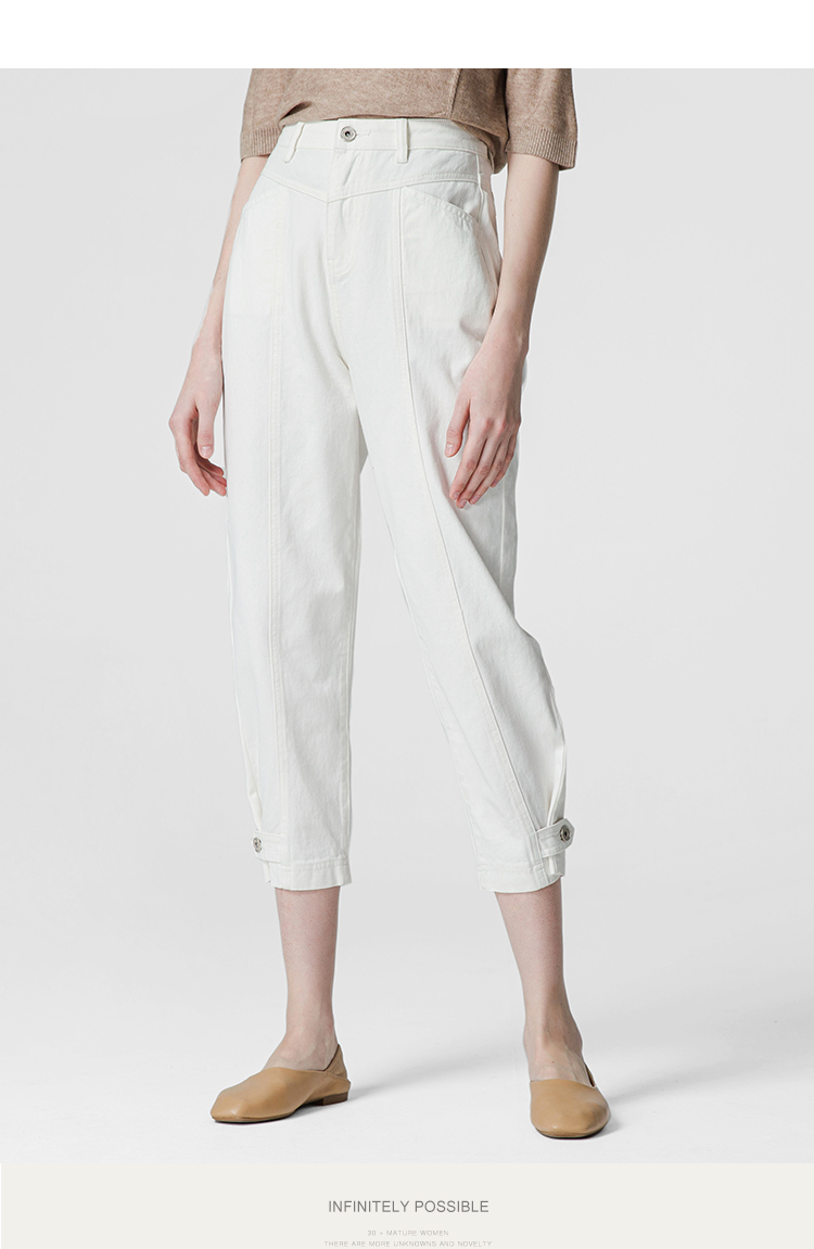 famecoco范可儿白色裤子女宽松显瘦百搭休闲裤F211GA006