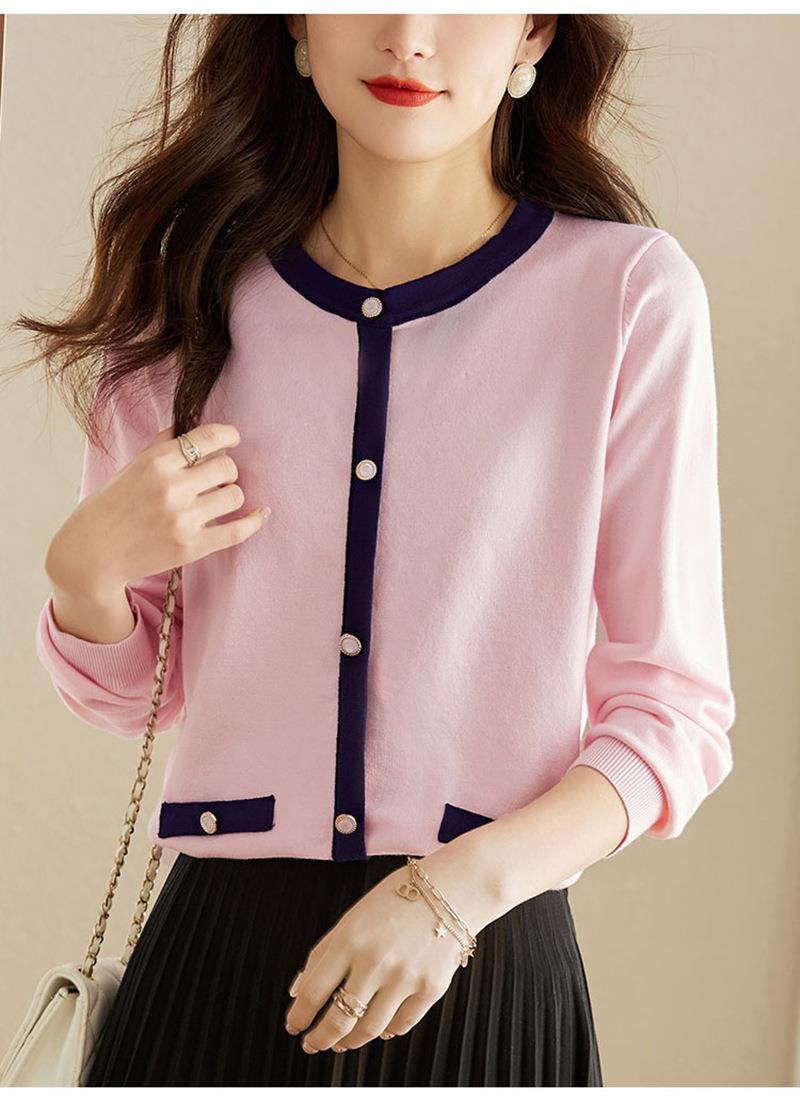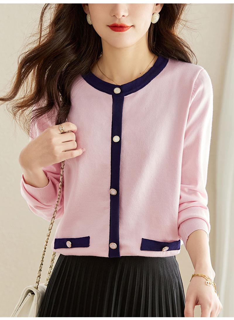 针织衫女长袖春秋季2023新款粉色洋气毛衣宽松小香风女人味上衣
