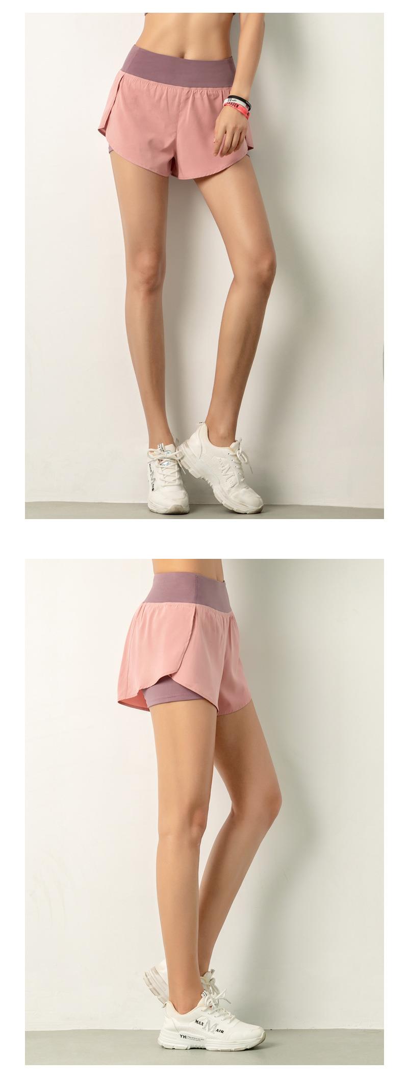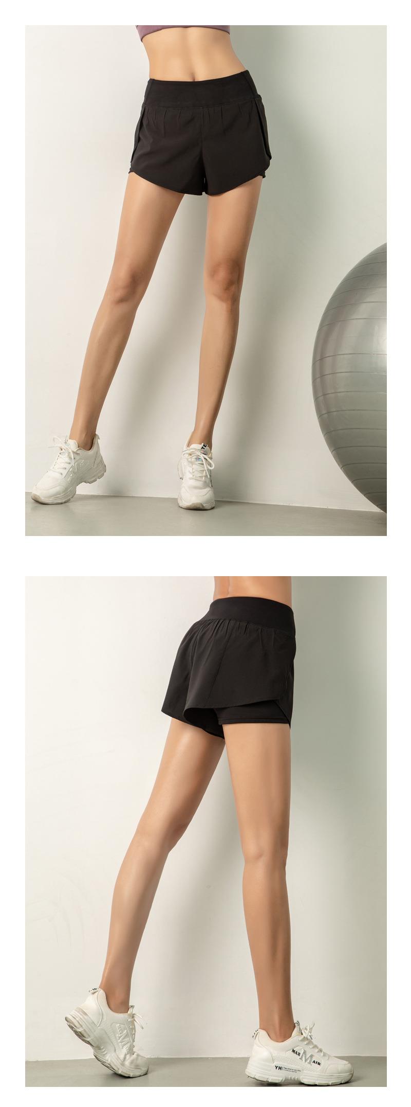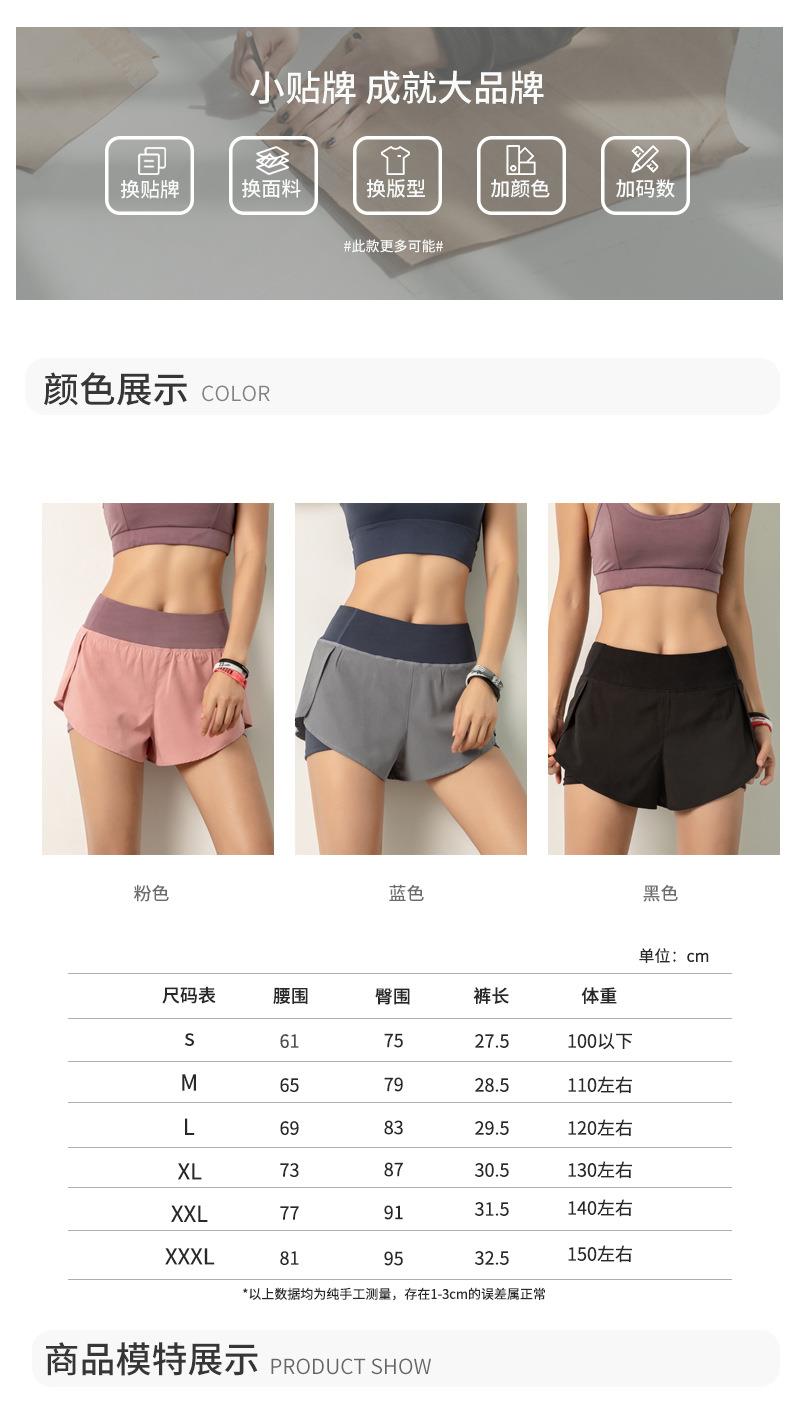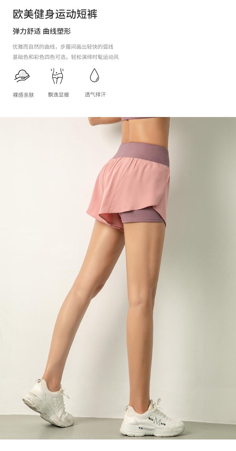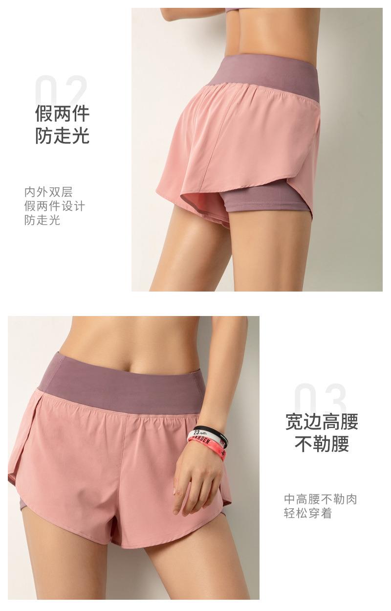 春夏休闲运动短裤女假两件防走光跑步速干热裤透气欧美瑜伽健身裤