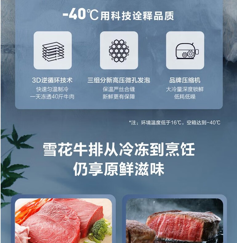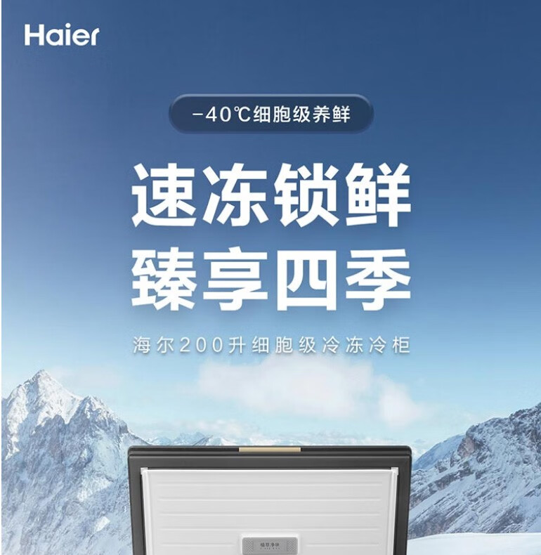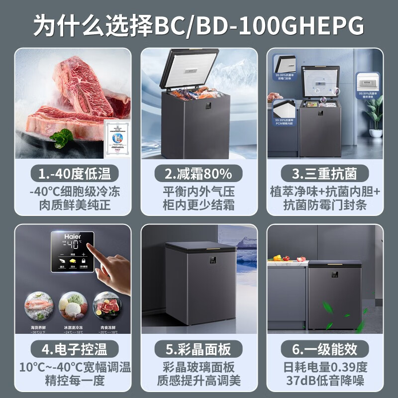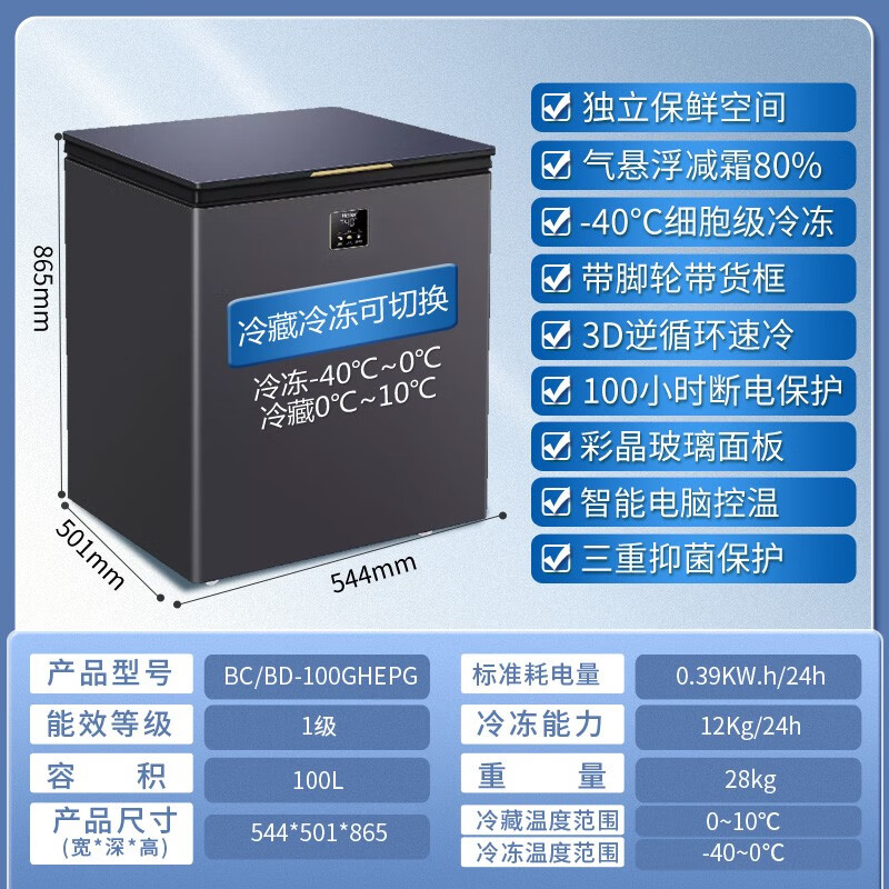 海尔(Haier)冰柜家用小型冷藏冷冻保鲜柜 -40°超低温小冰柜卧式商用冷柜 丨-40度顶配丨星蕴银丨BC/BD-100GHEPG