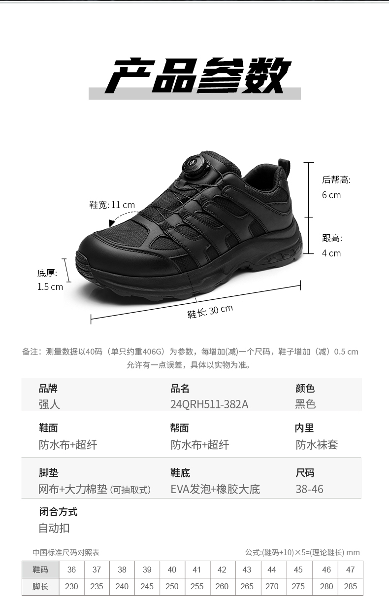 强人3515户外鞋男防水耐磨徒步鞋越野登山鞋黑色潮流涉水鞋训练鞋