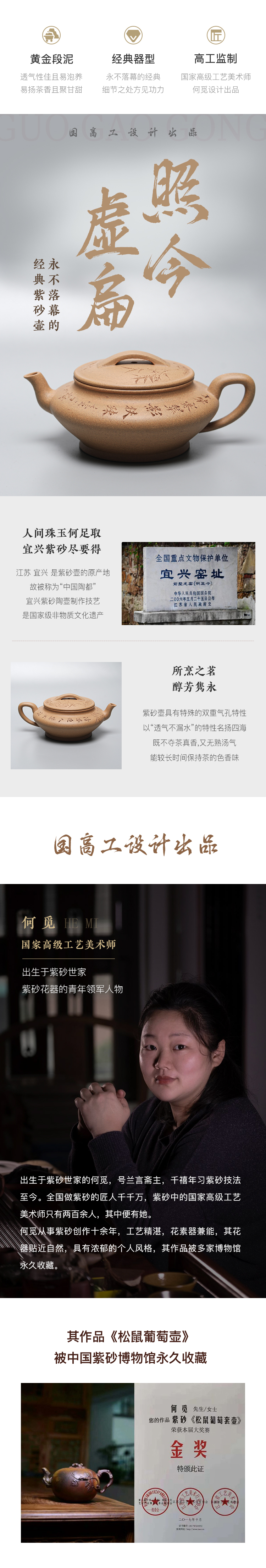 国高工何觅出品黄金段照今虚扁紫砂壶