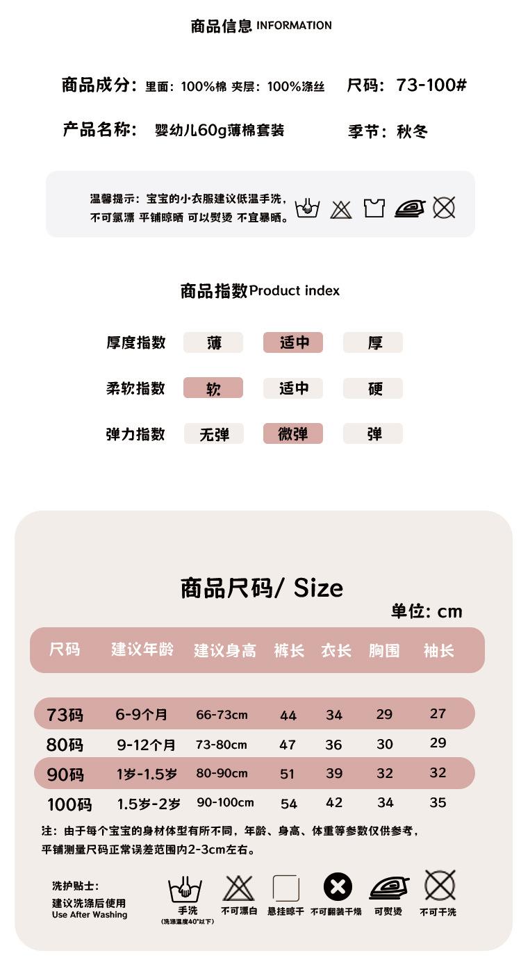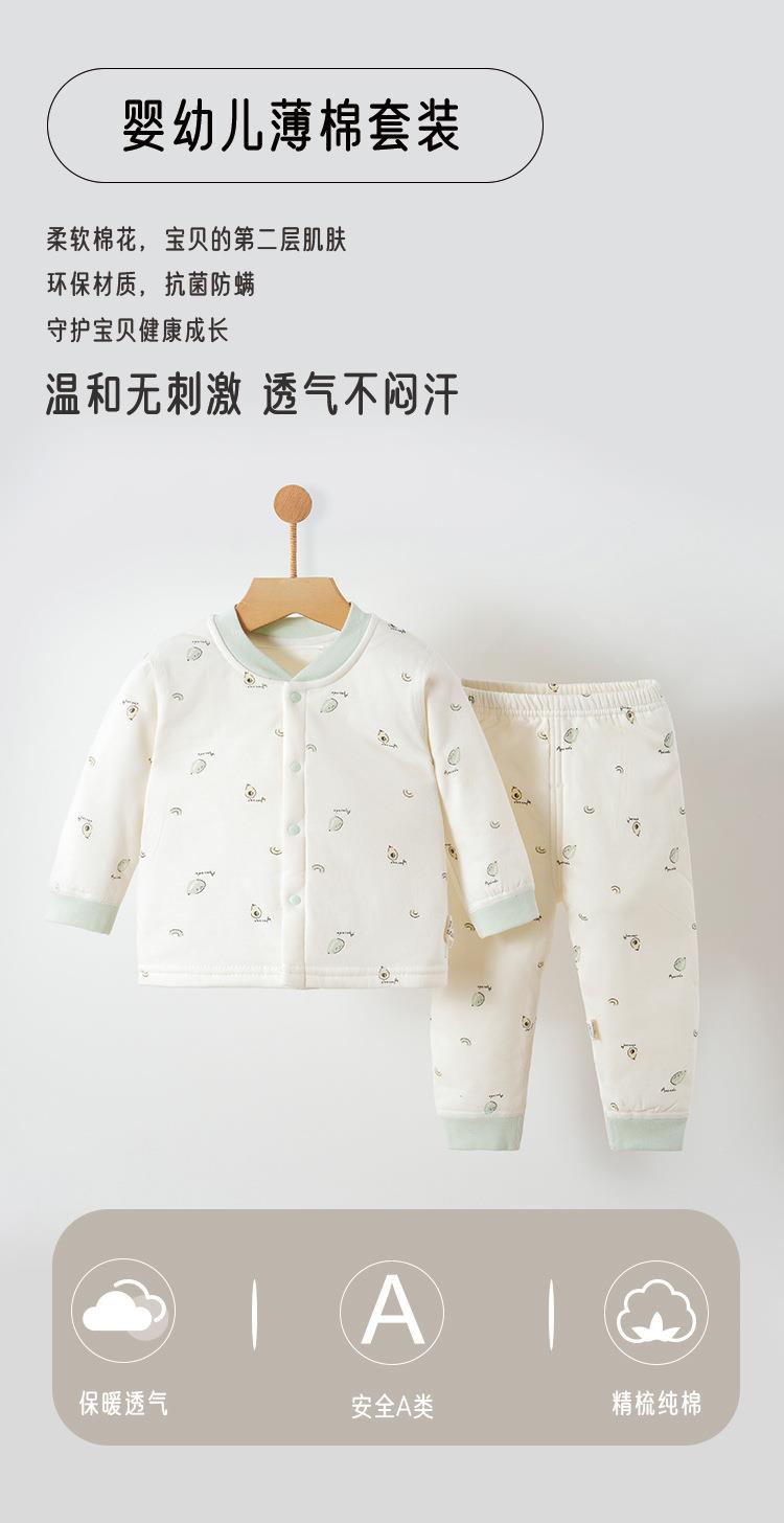 婴儿保暖内衣套装秋冬薄棉男女宝宝纯棉无骨分体保暖夹棉家居套装