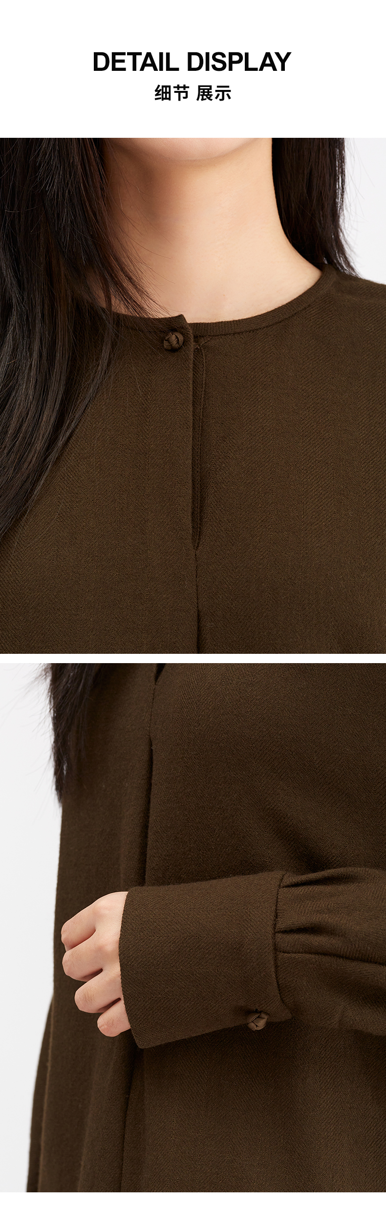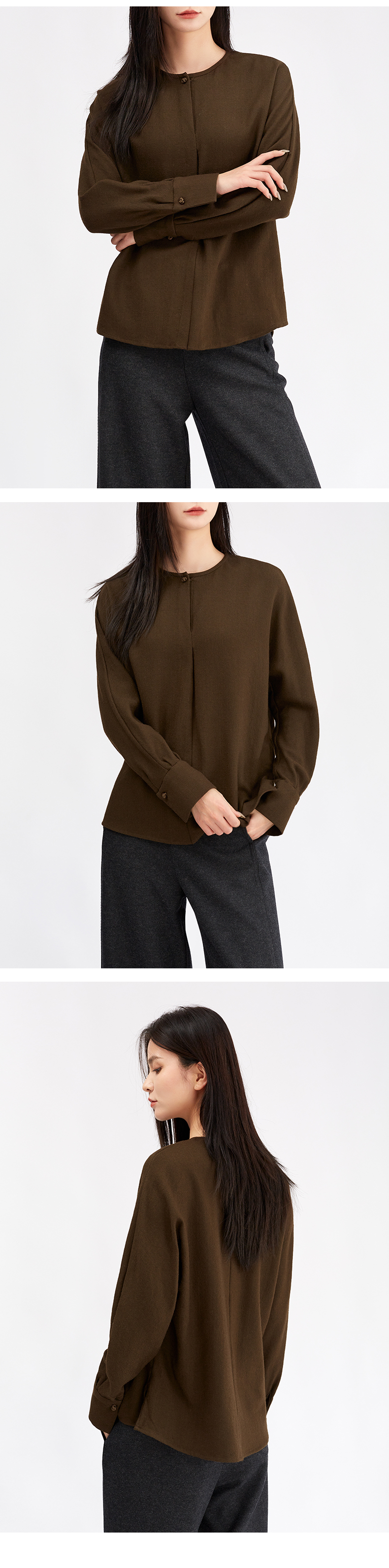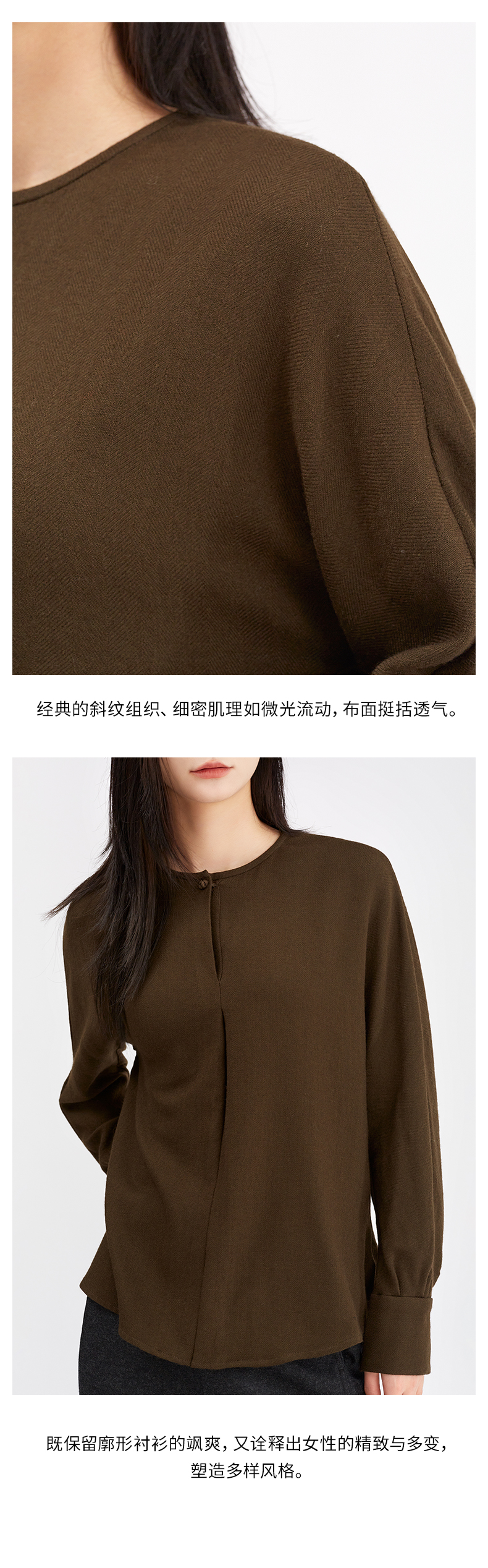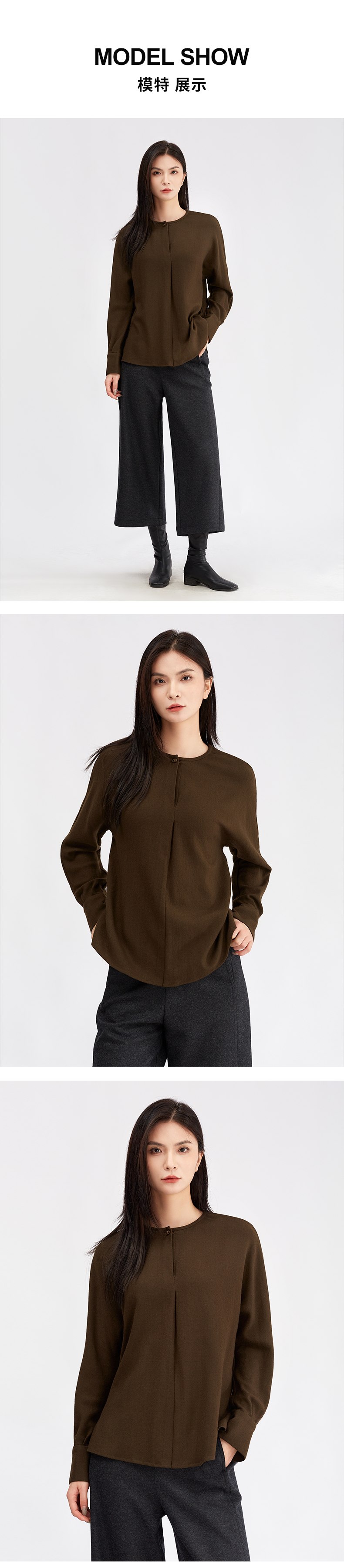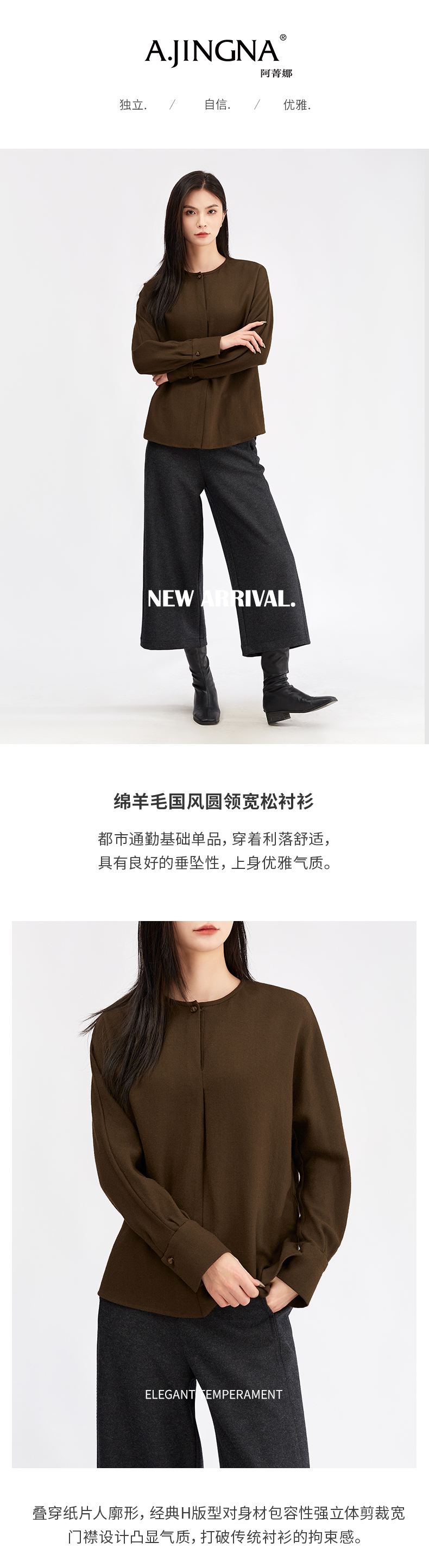 【廓形飒爽】阿菁娜绵羊毛国风圆领宽松衬衫F30D209001