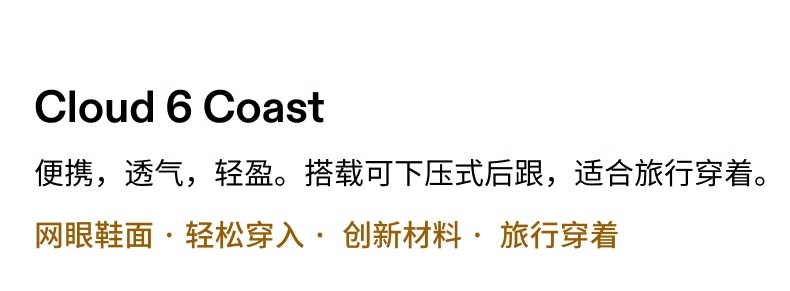 On 昂跑 Cloud 6 Coast 男女款2025春夏新品可踩跟轻便透气休闲运动鞋