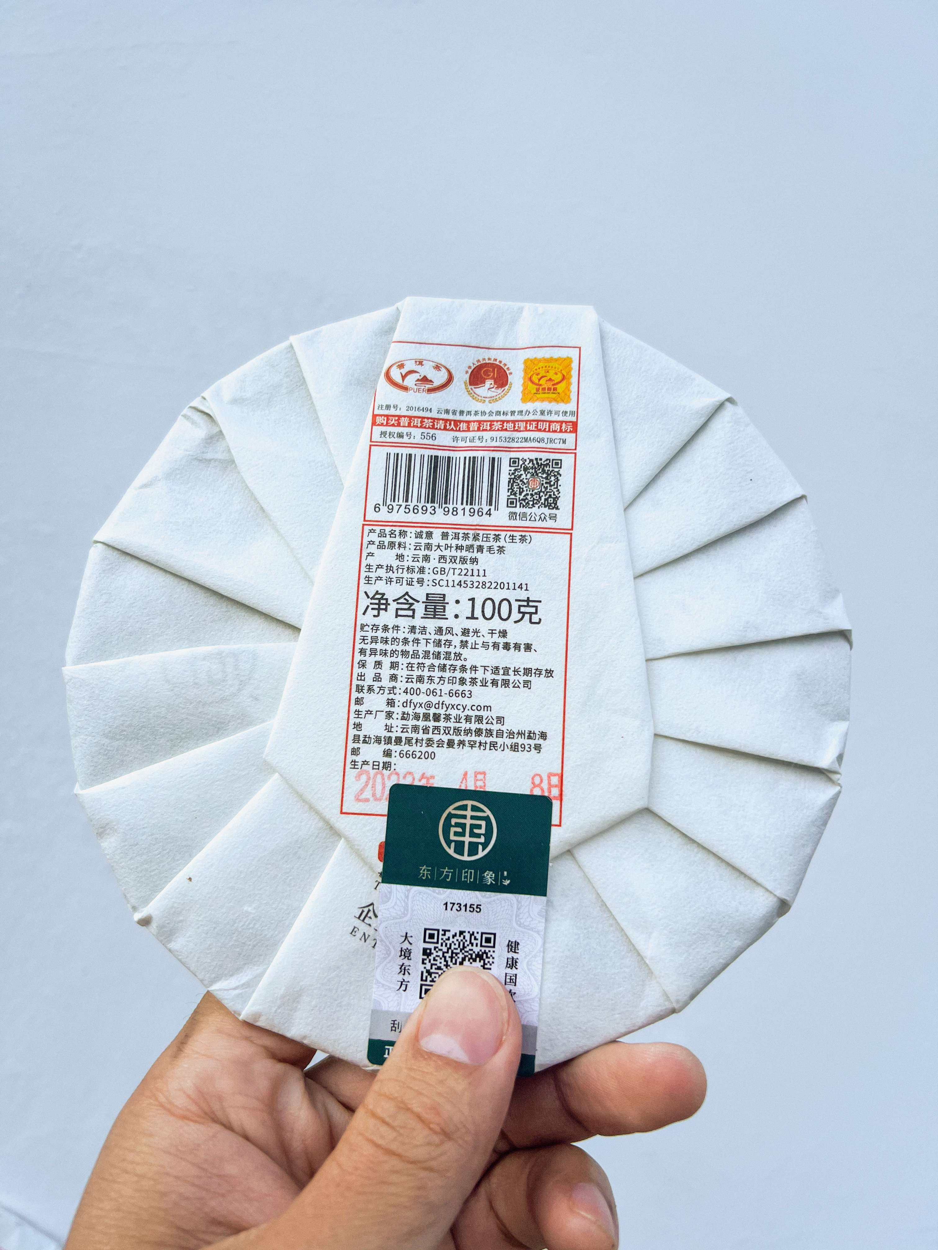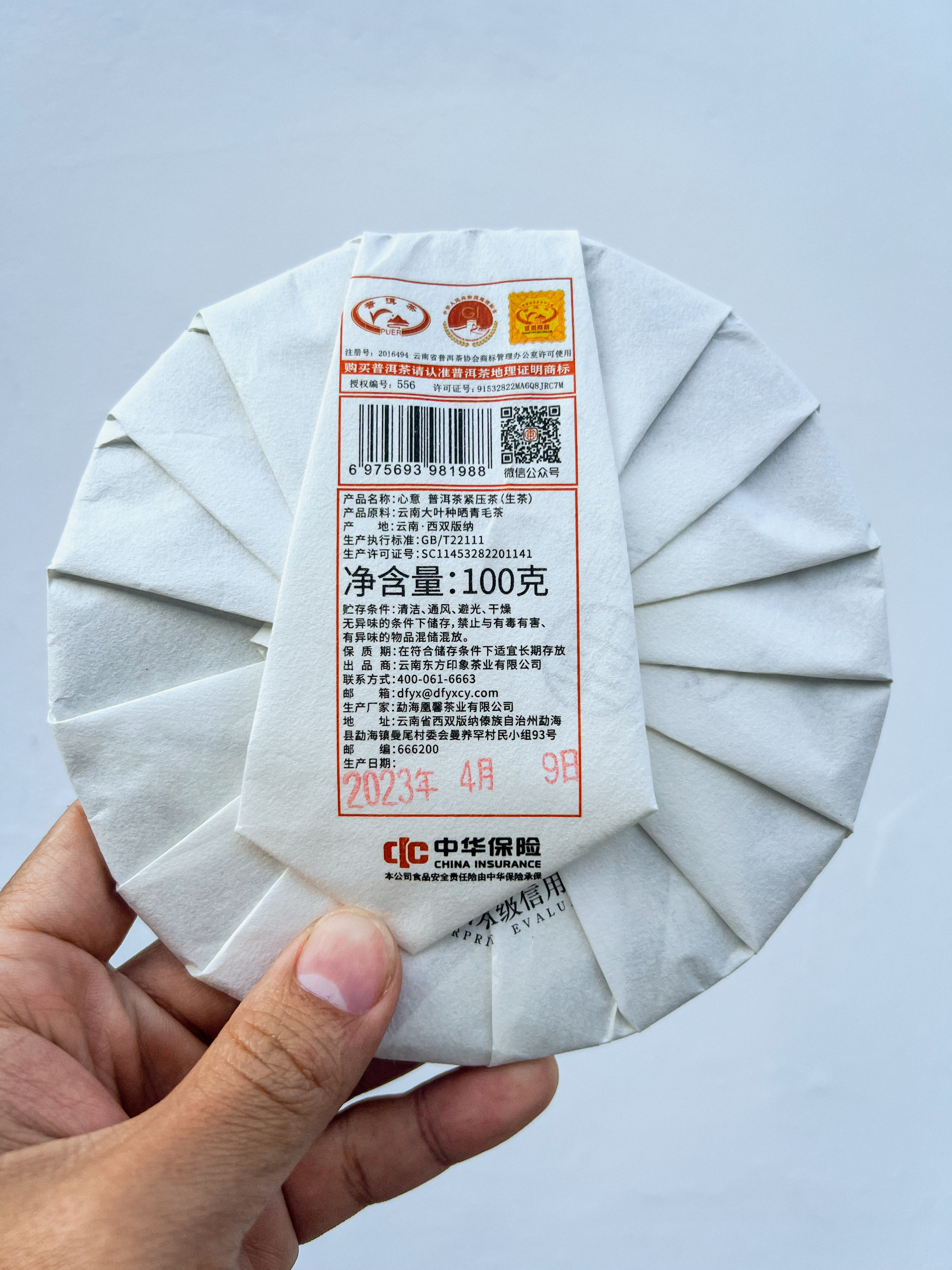 原料产地:云南勐海 净含量:100克/饼 原料年份:2023年