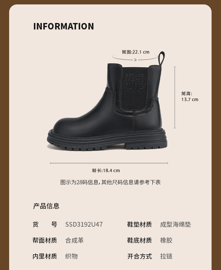【童鞋】星期六英伦复古女童烟筒靴SSD3192U47