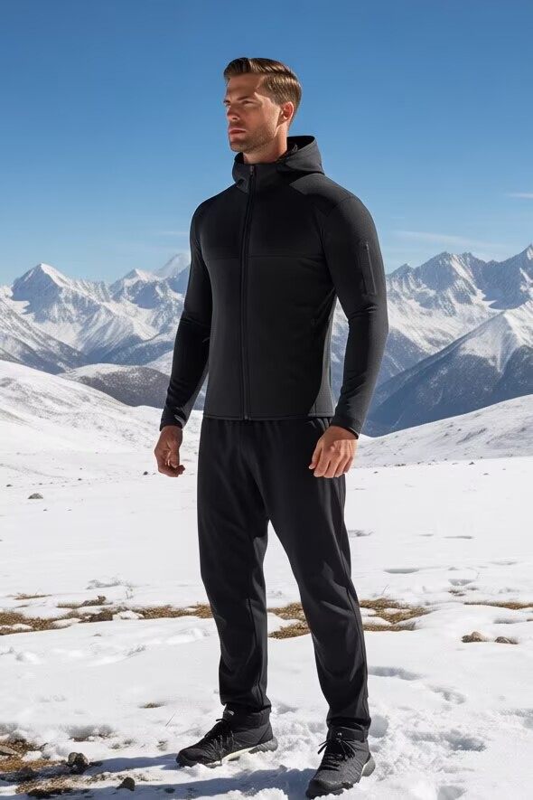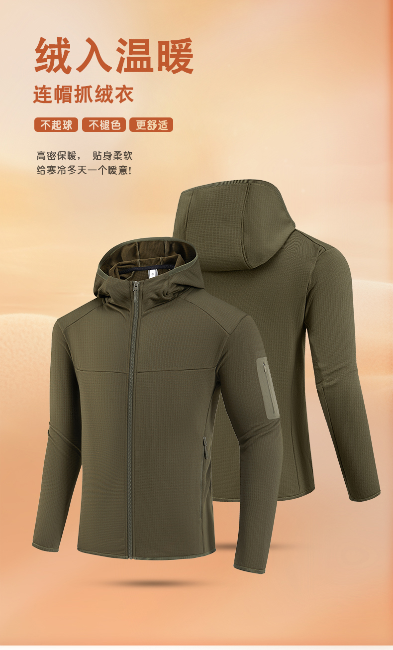 纳趣格绒弹力保暖速干运动外套连帽款加绒抓绒衣