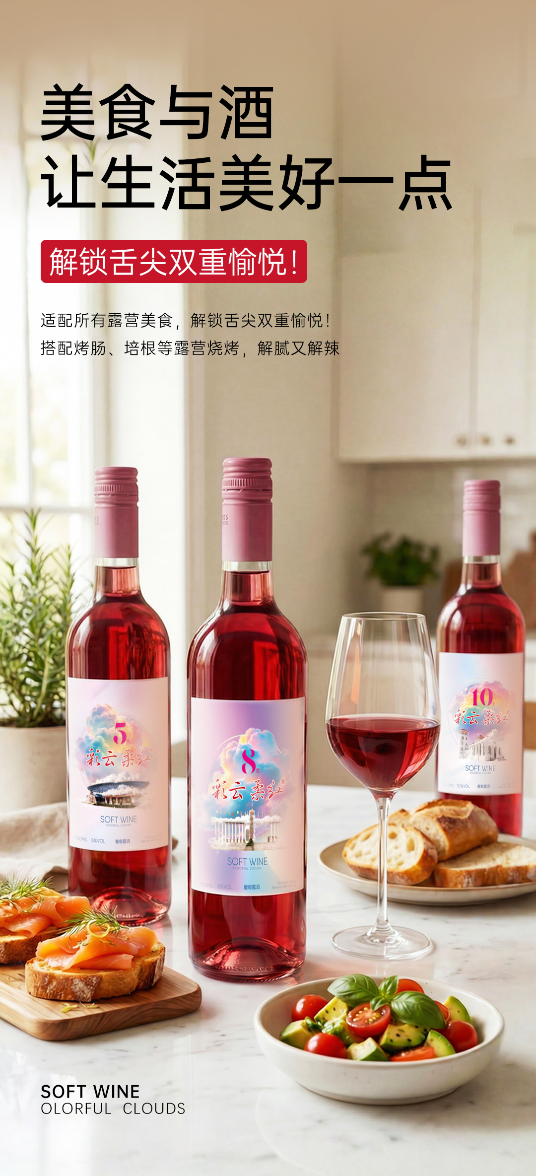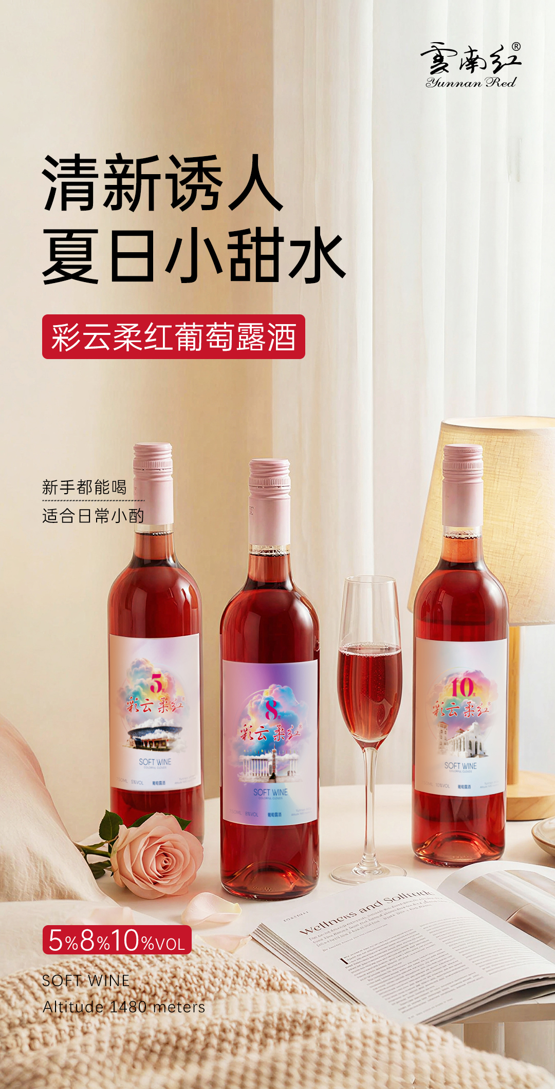 【26年新品】云南红彩云柔红5度/8度/10度葡萄露酒弥勒酒庄