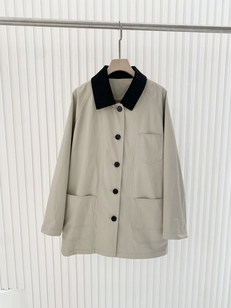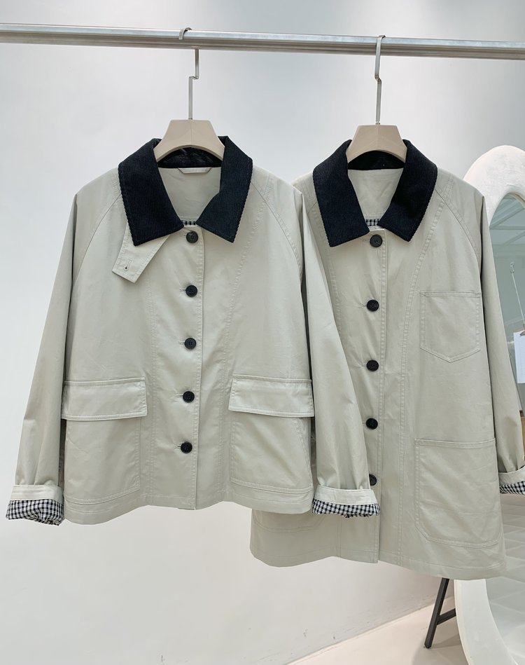 撞色灯芯绒领
