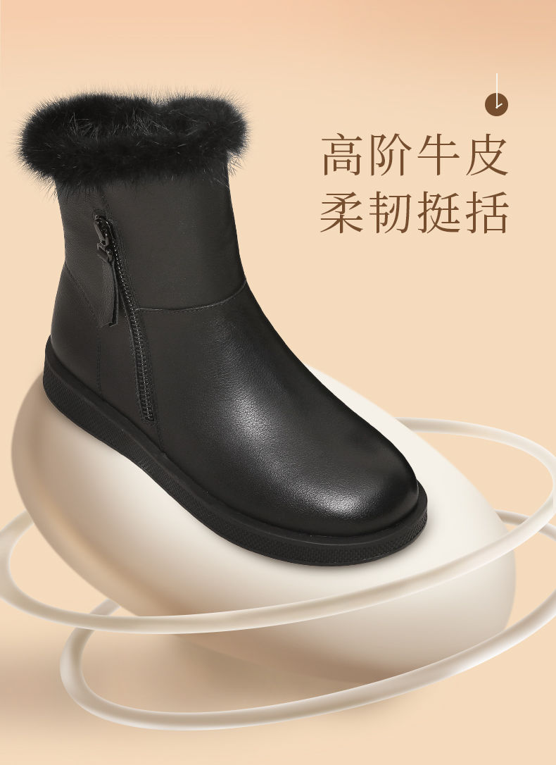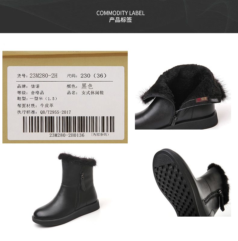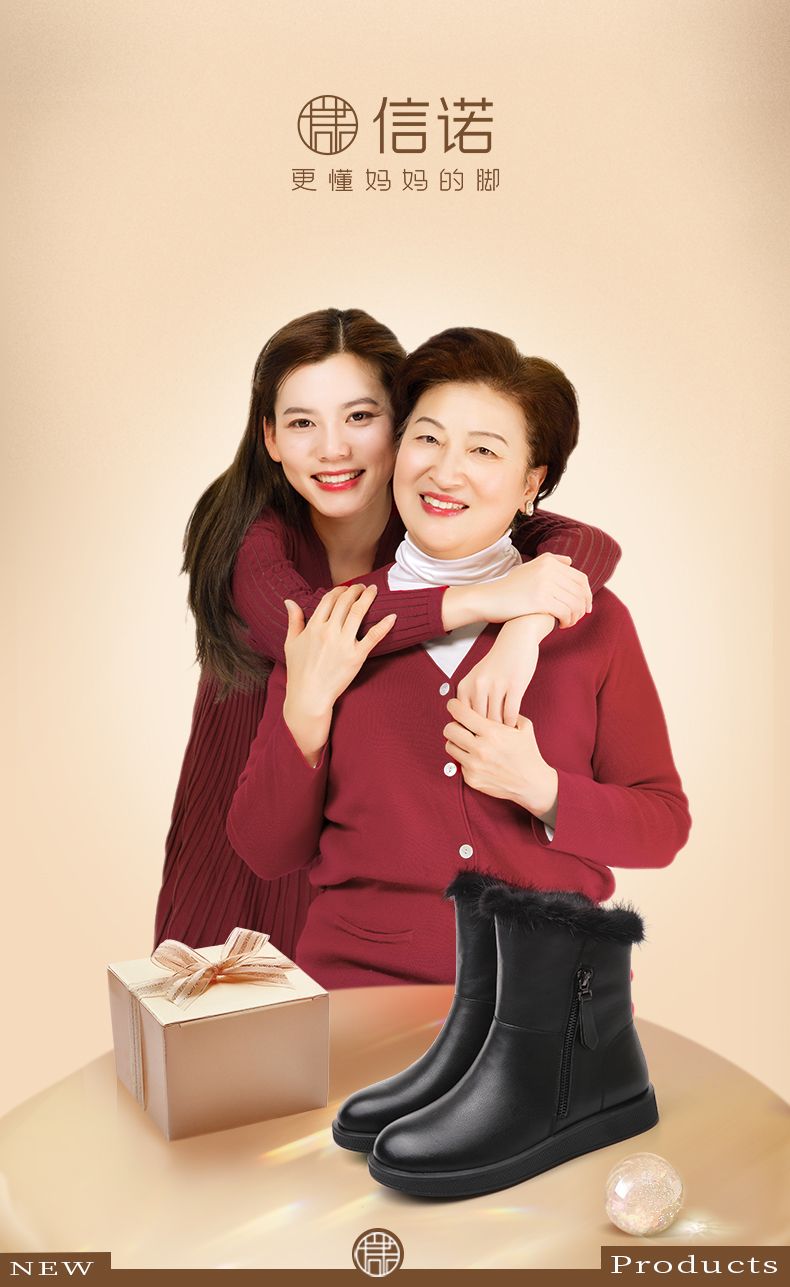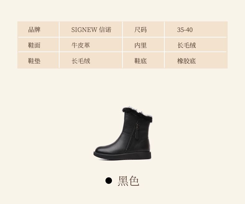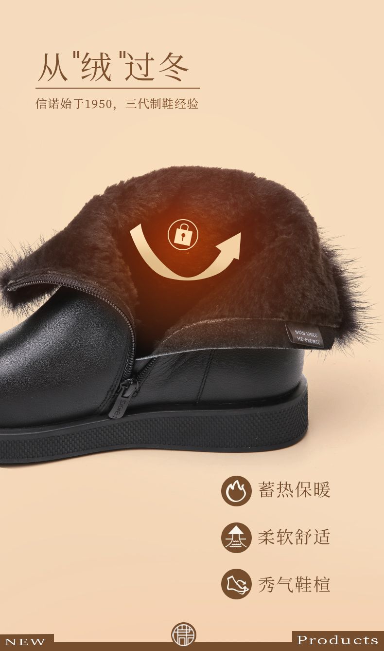 信诺真皮雪地靴女靴子短靴保暖加绒冬季2023新款防滑平底妈妈棉鞋23M280-2H