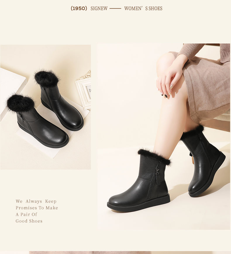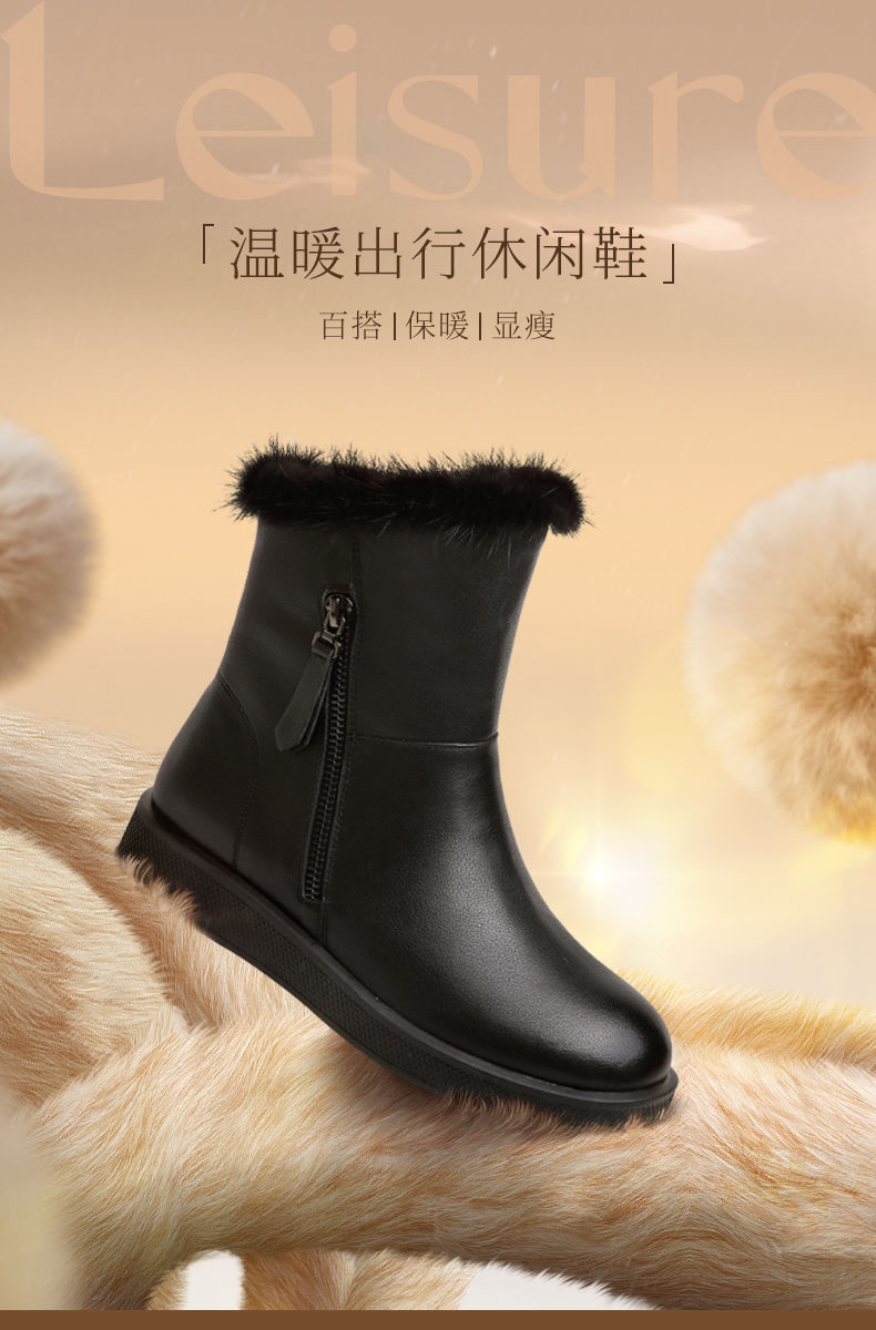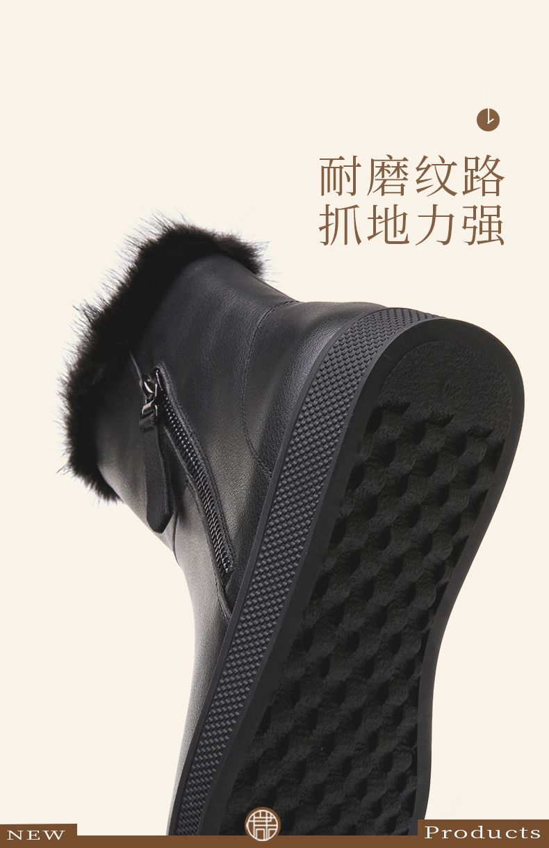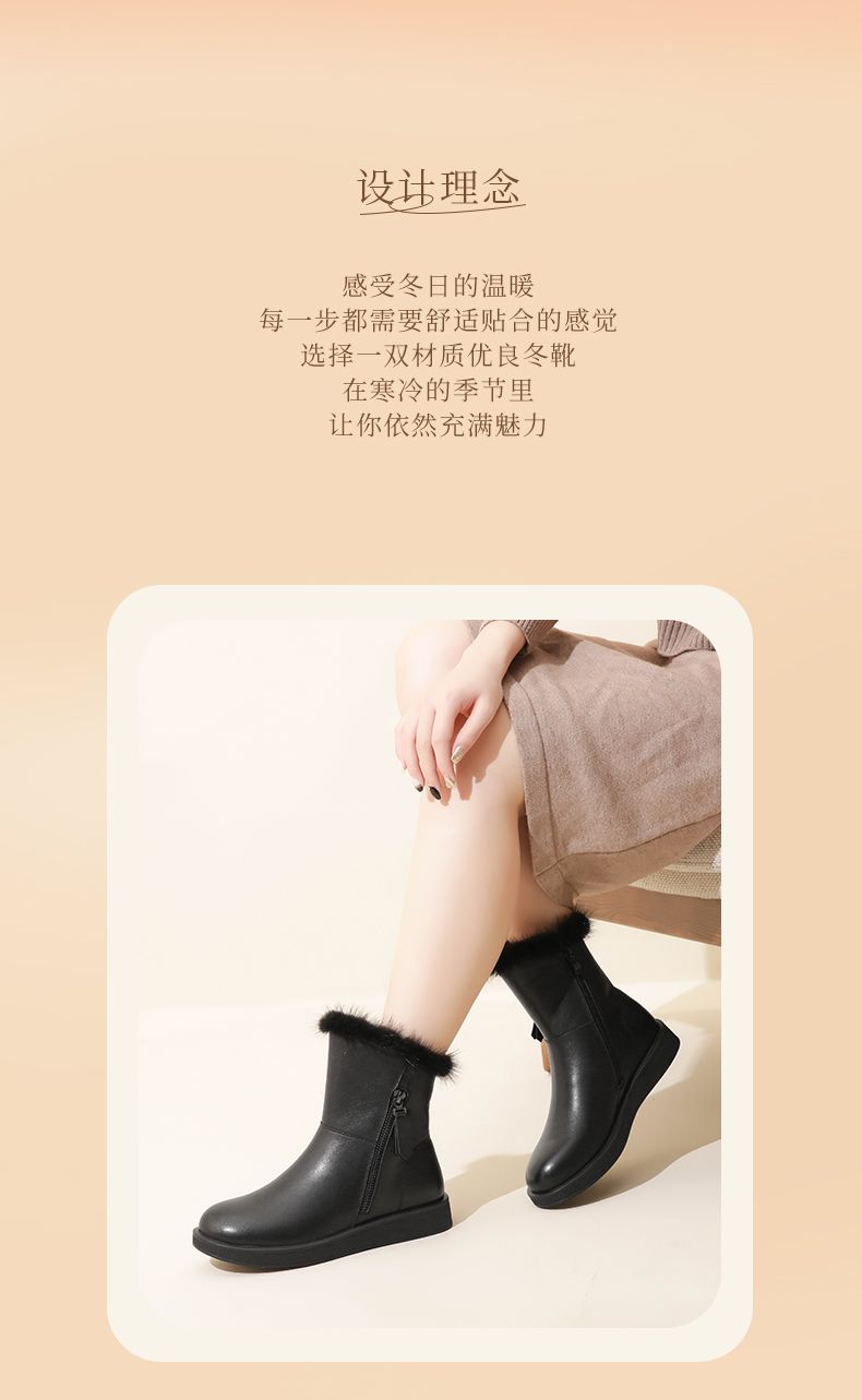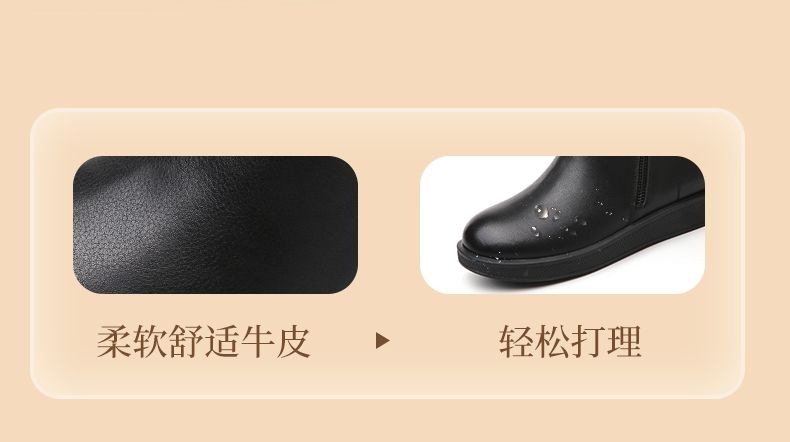信诺真皮雪地靴女靴子短靴保暖加绒冬季2023新款防滑平底妈妈棉鞋23M280-2H