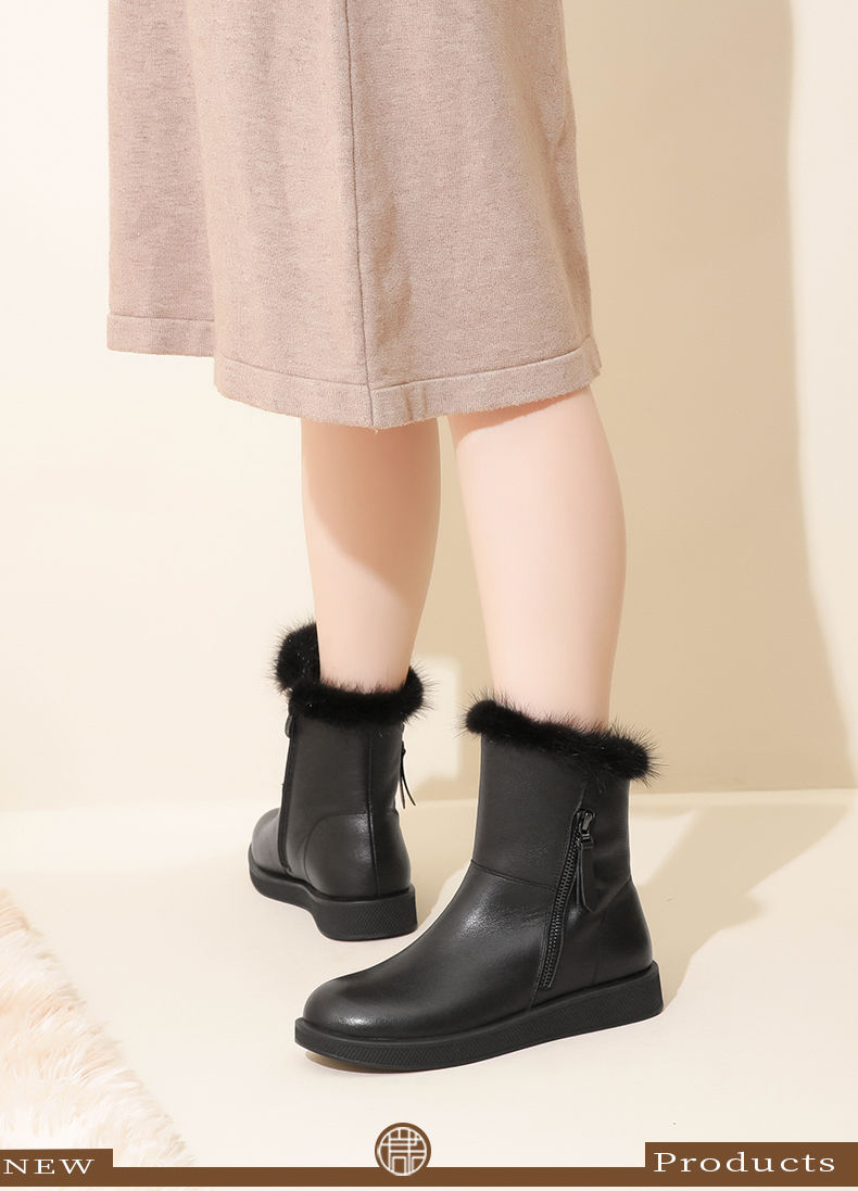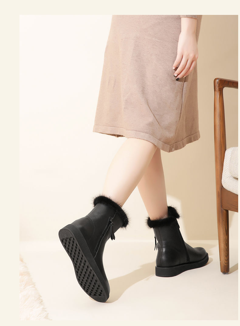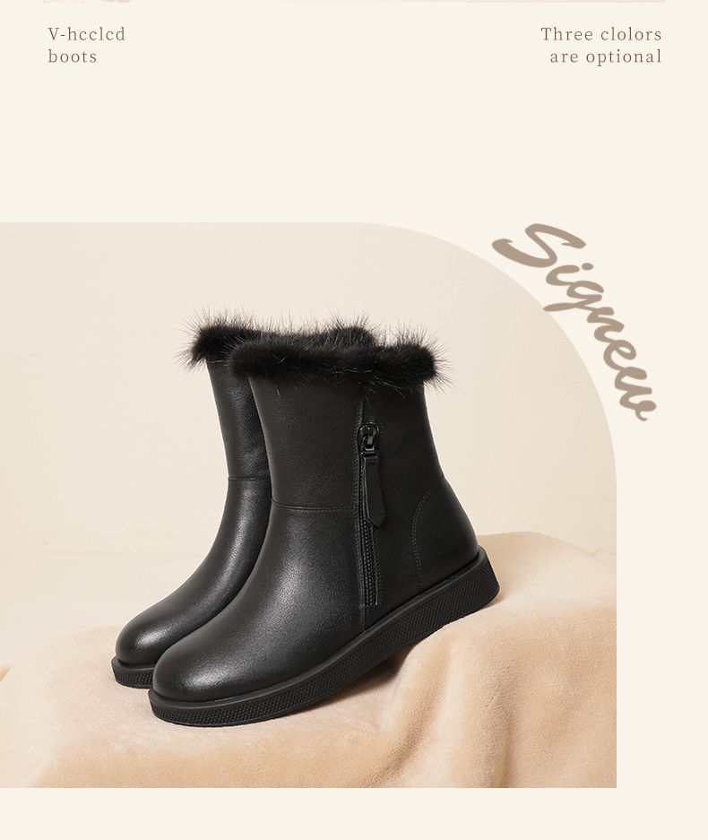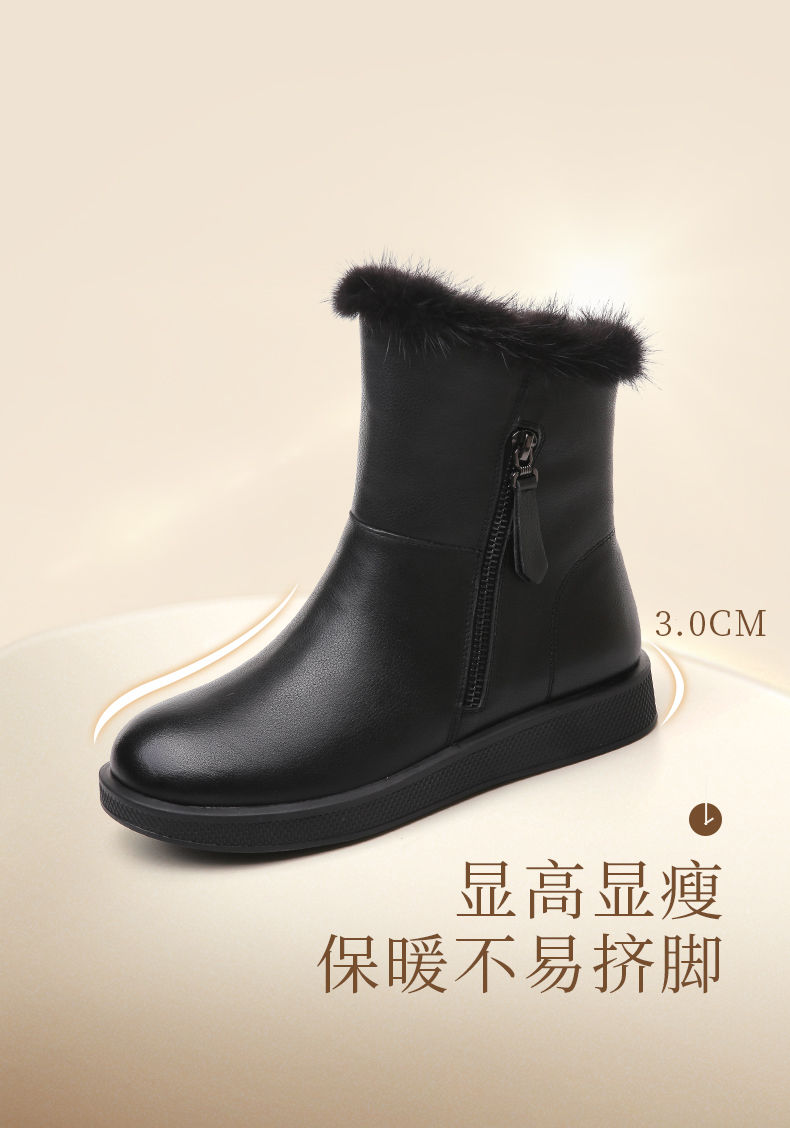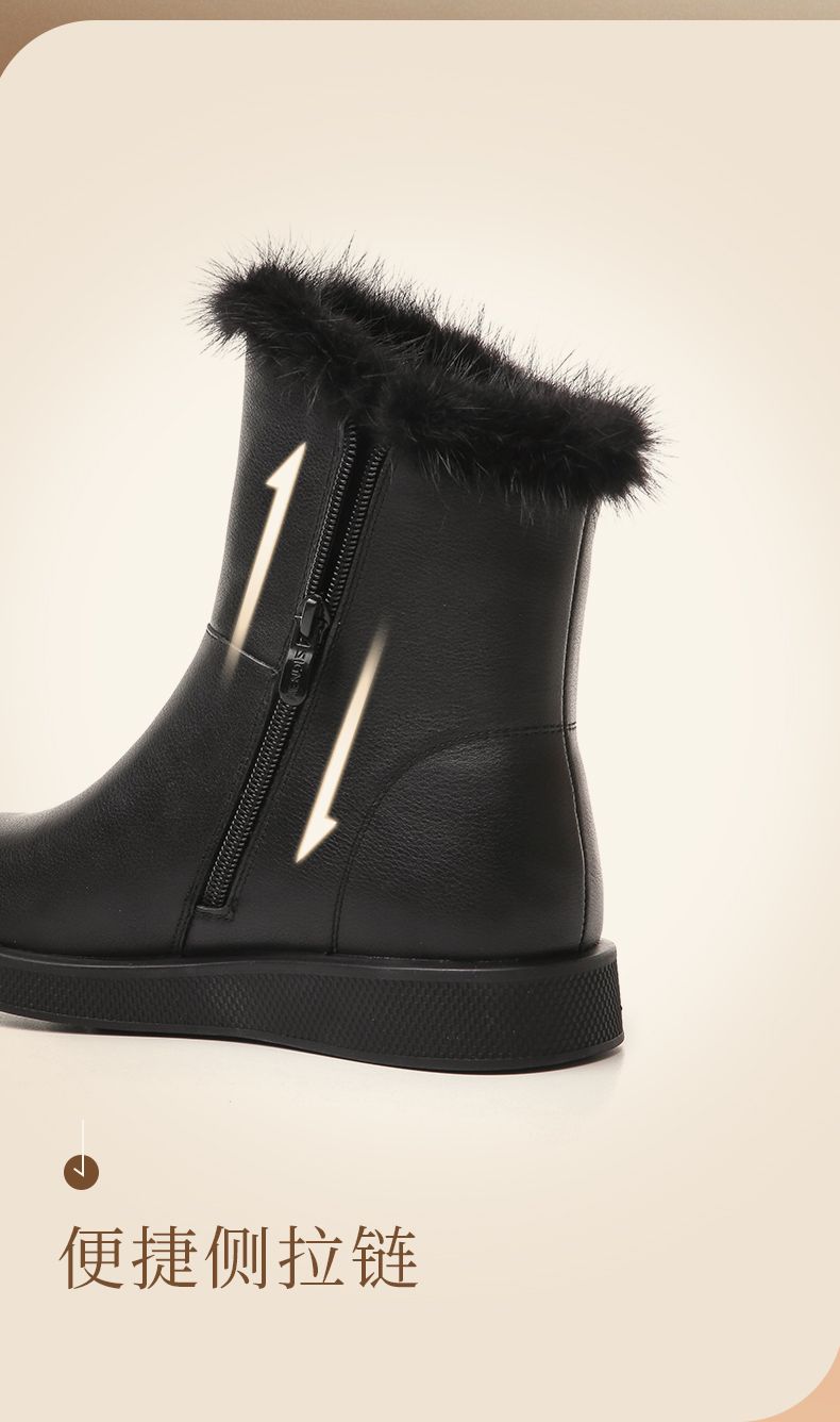 信诺真皮雪地靴女靴子短靴保暖加绒冬季2023新款防滑平底妈妈棉鞋23M280-2H