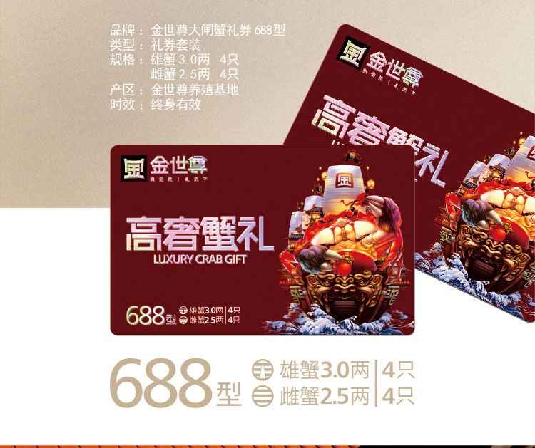 金世尊大闸蟹688型 雄蟹3.0两 4只/雌蟹2.5两 4只【LY】【包邮直发】