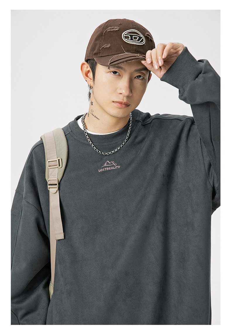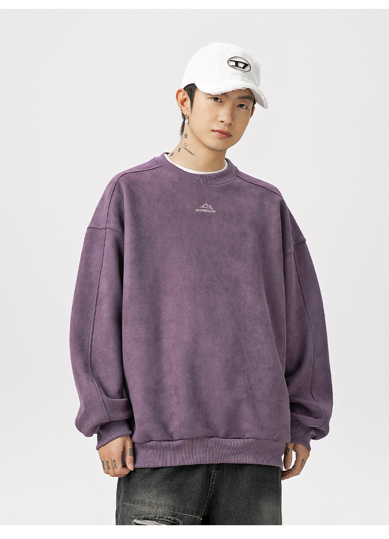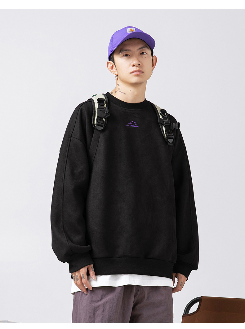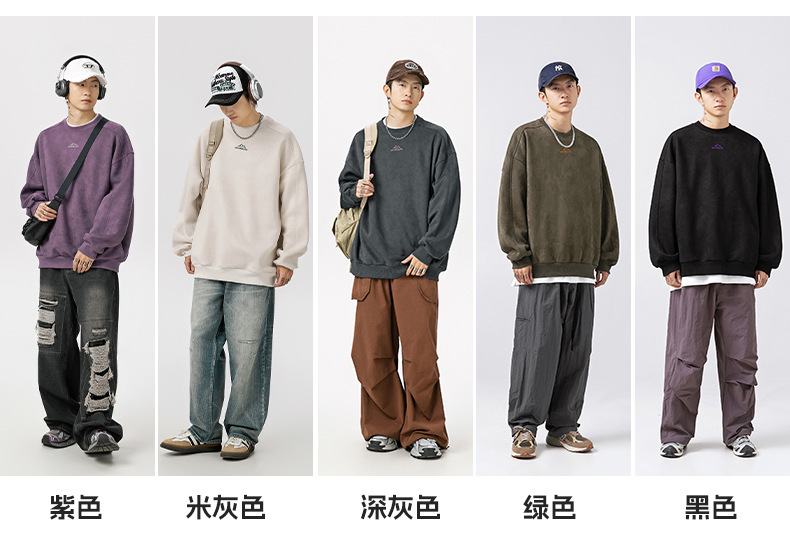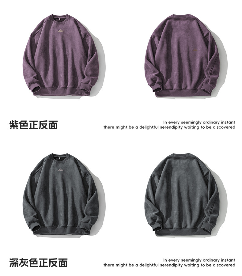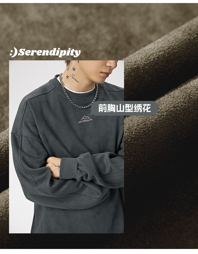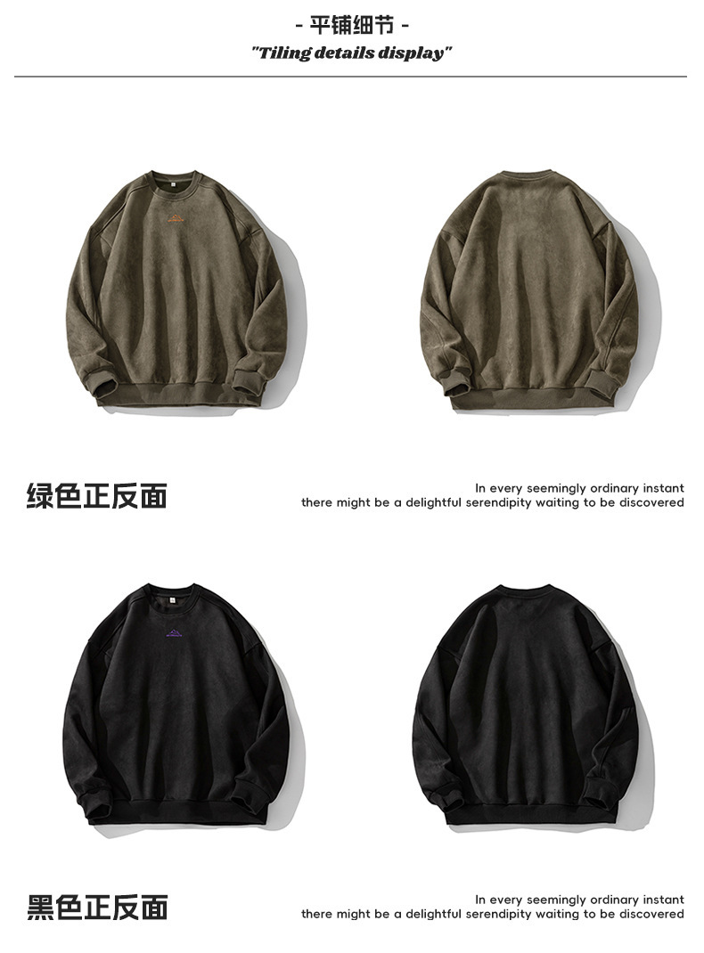 【GZ】无忧购 350G质感麂皮绒圆领卫衣男款分割设计重磅复古潮牌刺绣上衣K3776 (截单后3-5天发货)