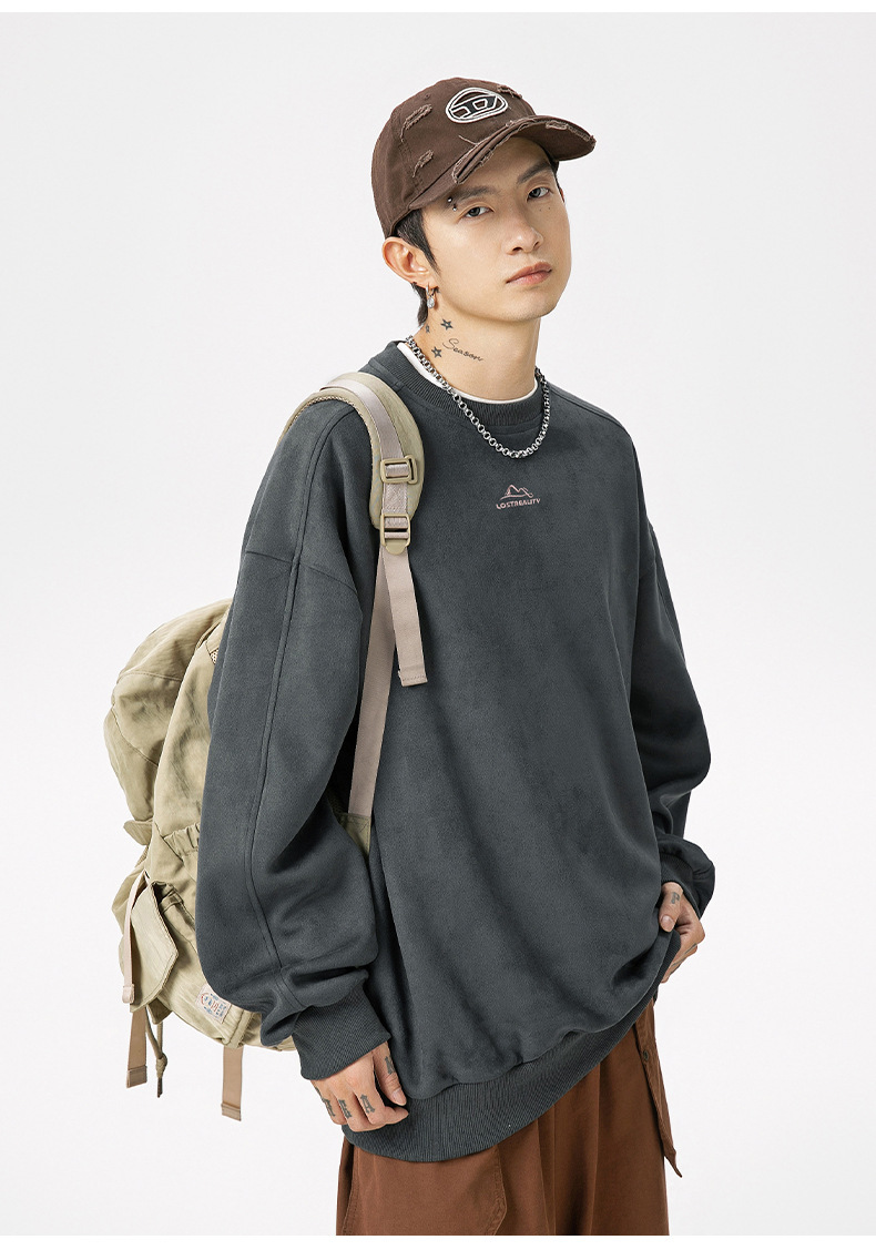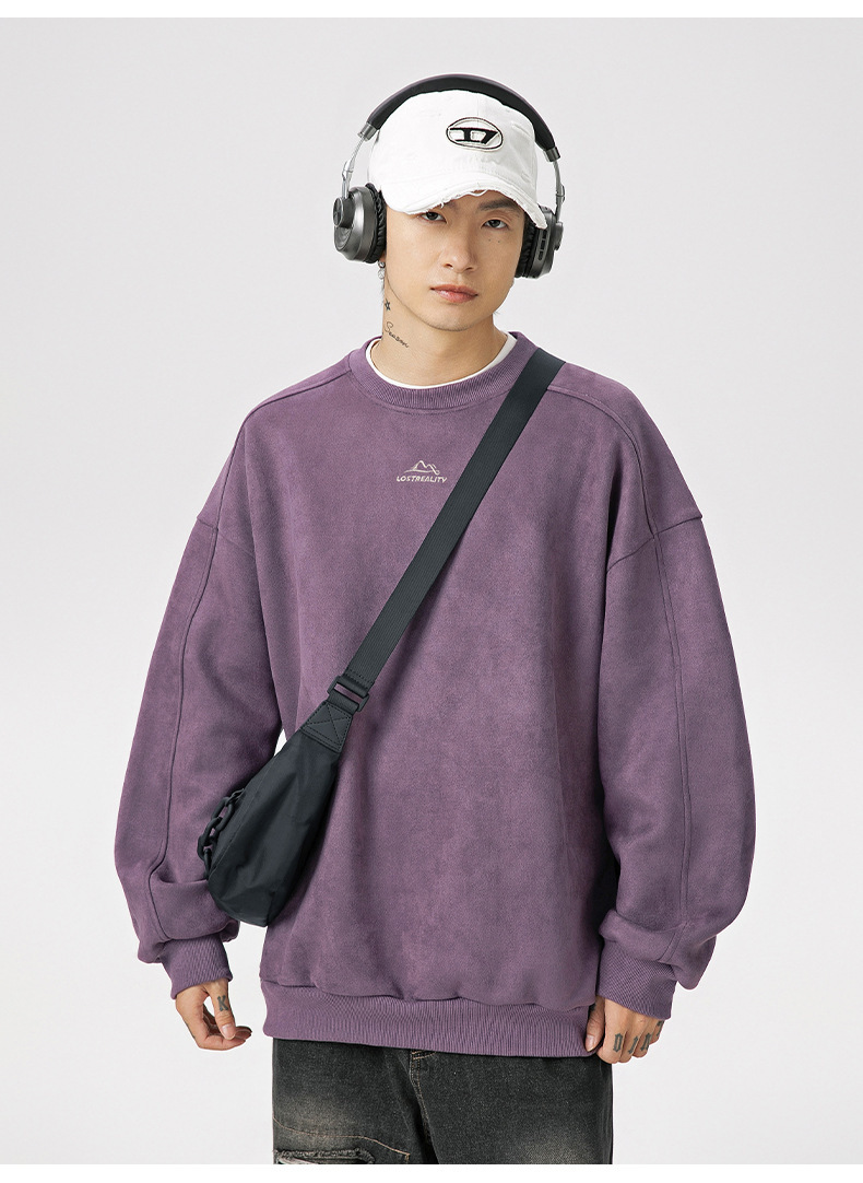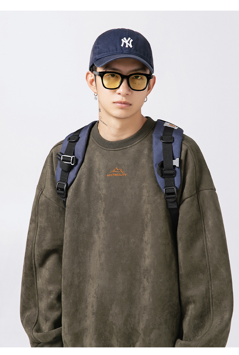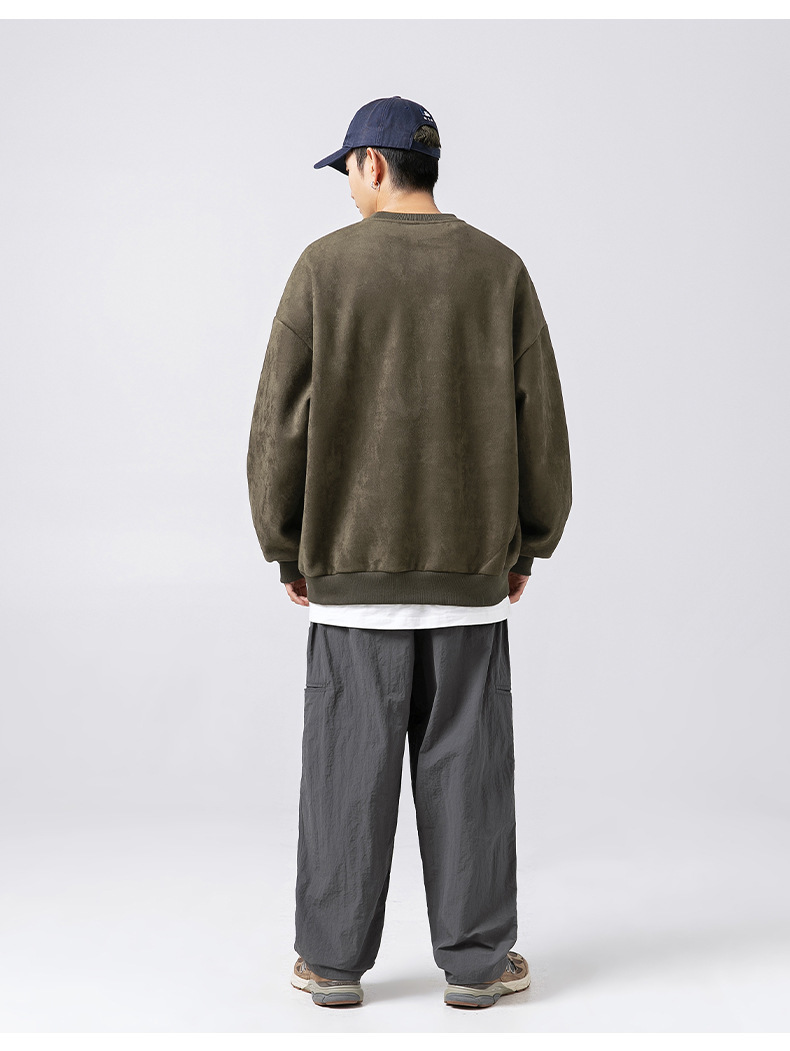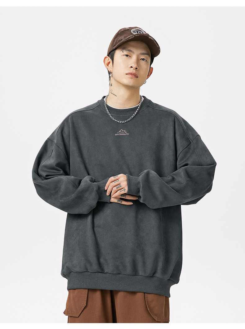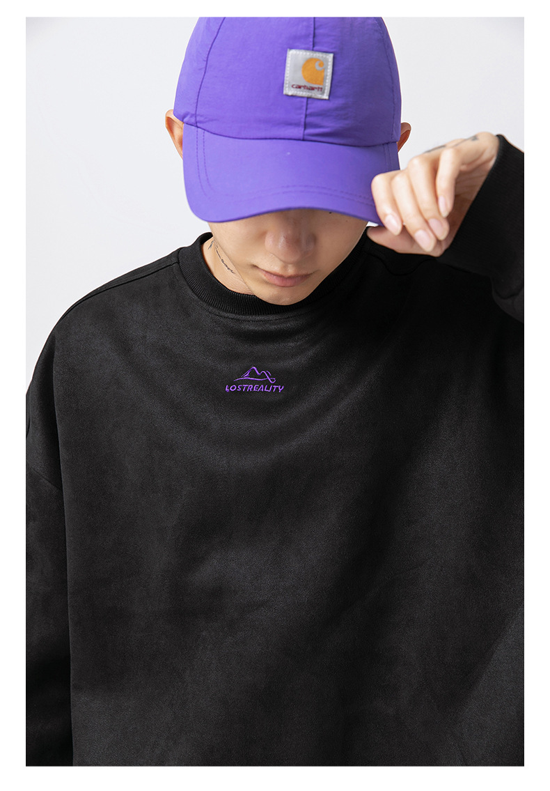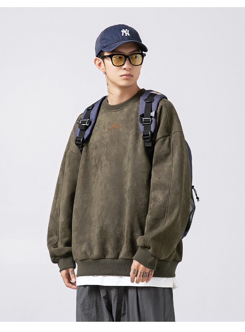 【GZ】无忧购 350G质感麂皮绒圆领卫衣男款分割设计重磅复古潮牌刺绣上衣K3776 (截单后3-5天发货)