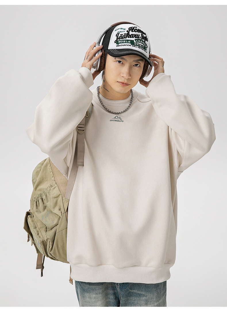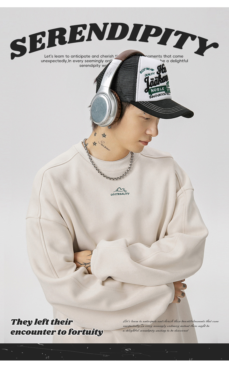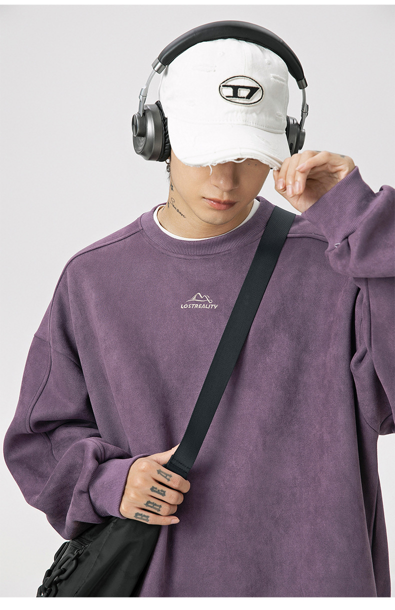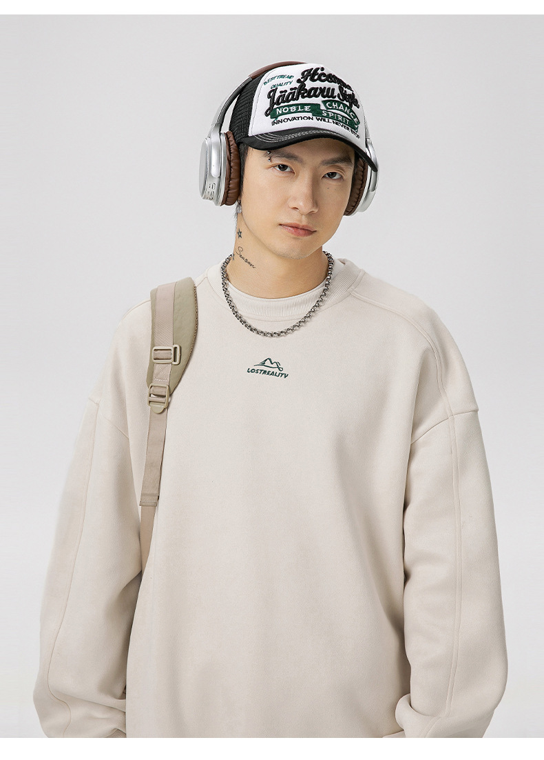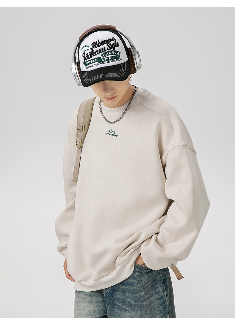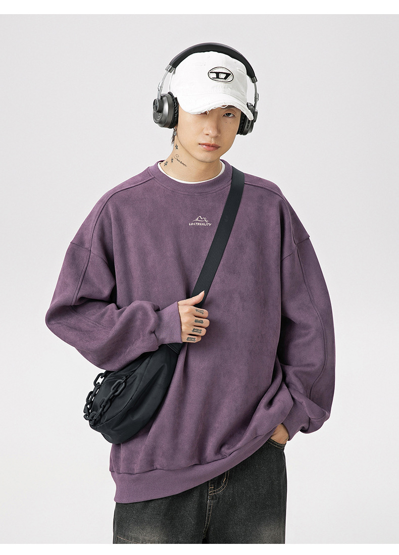 【GZ】无忧购 350G质感麂皮绒圆领卫衣男款分割设计重磅复古潮牌刺绣上衣K3776 (截单后3-5天发货)
