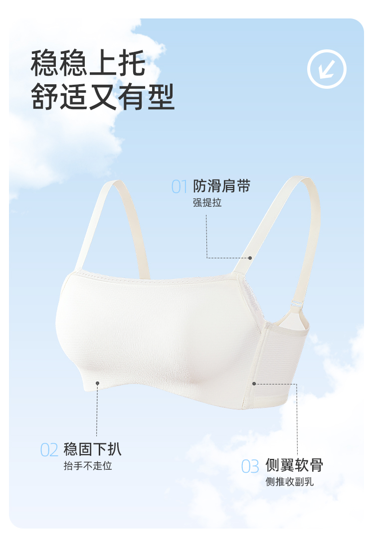 【大胸显小BC杯】熳洁儿 防走光抹胸薄杯女士内衣舒适无痕无钢圈聚拢文胸24261509