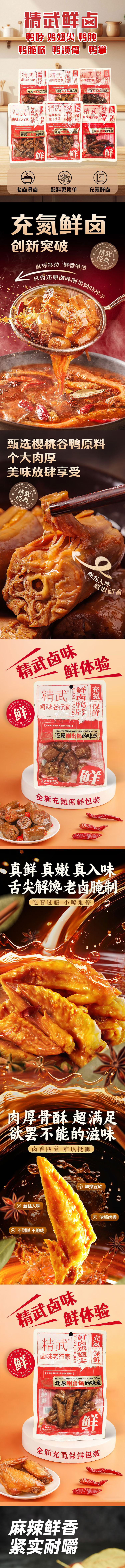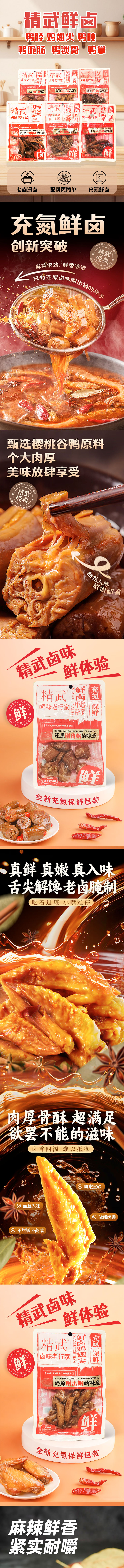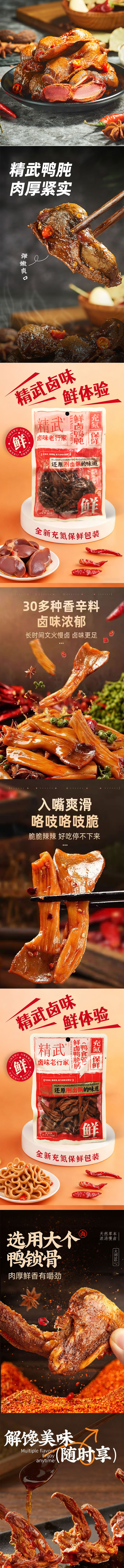精武鲜卤鸭锁骨|鸭脖|鸡翅尖|鸭掌|鸭肫(麻辣味)|鸭脆肠(鸭食管)80g~90g