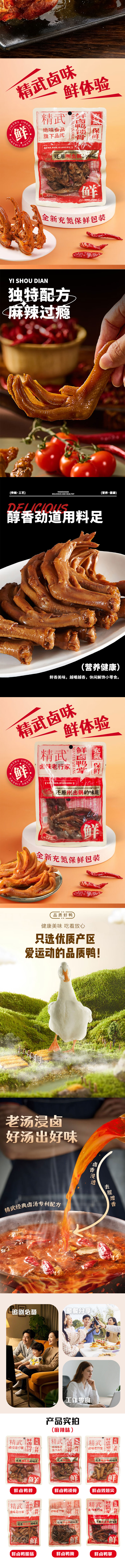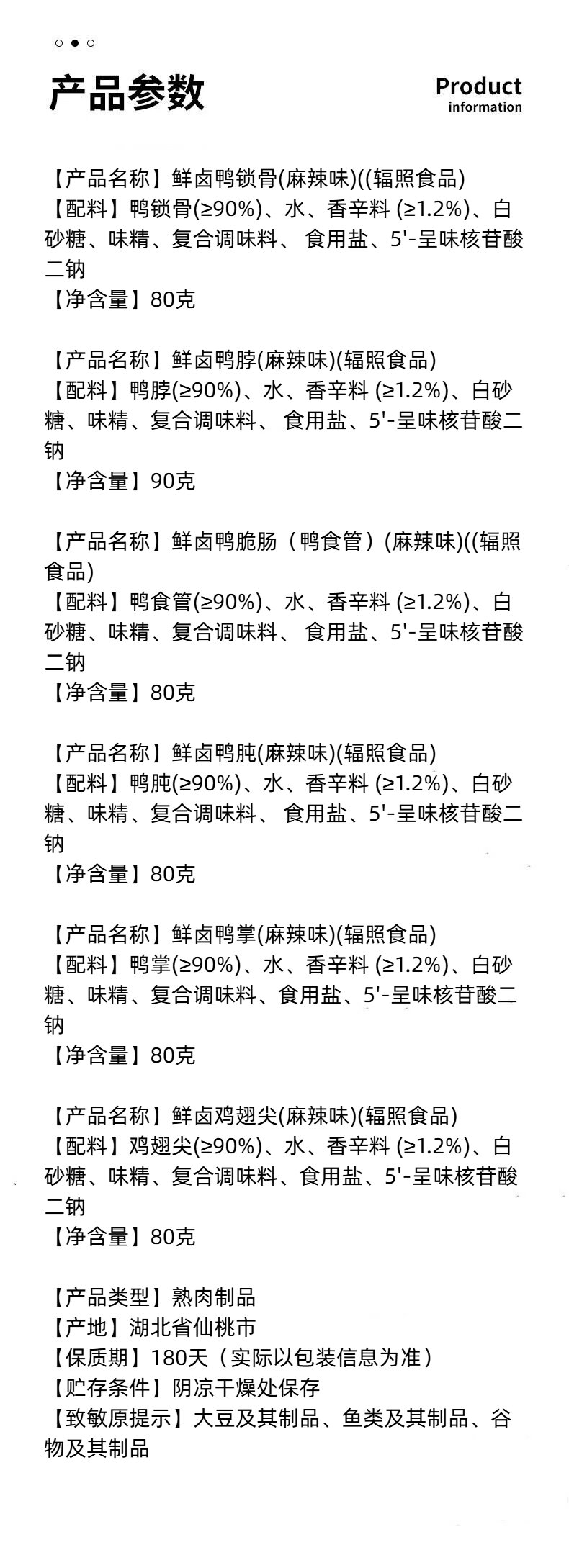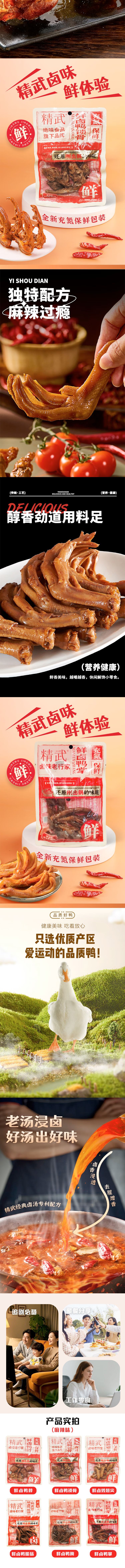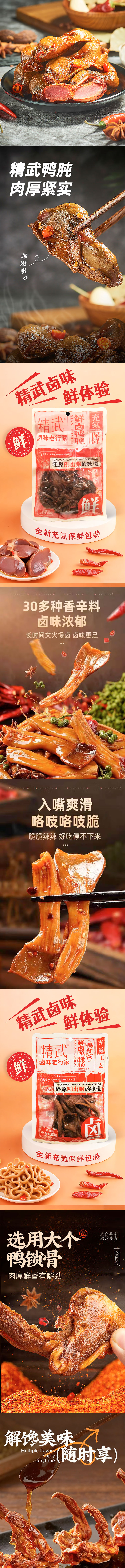 精武鲜卤鸭锁骨|鸭脖|鸡翅尖|鸭掌|鸭肫(麻辣味)|鸭脆肠(鸭食管)80g~90g