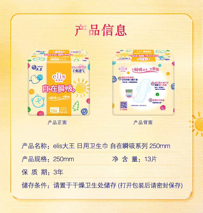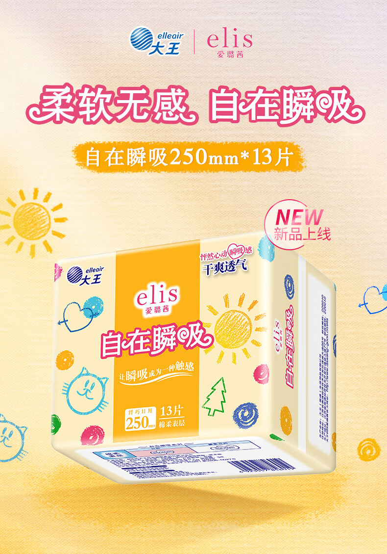 大王爱璐茜自在瞬吸250日用卫生巾13片