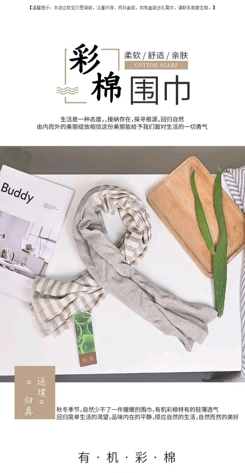 丨有机丨素道有机彩棉 围巾 棋盘格围巾 百搭 男女情侣同款 女士护颈披肩两用?秋冬保暖时尚围脖亲肤舒适材质