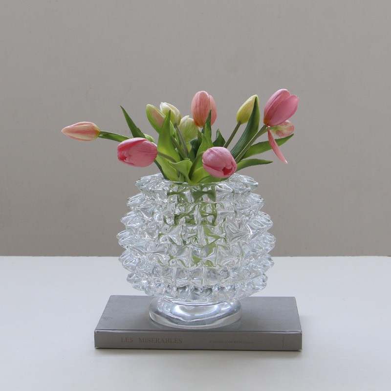 轻奢水晶厚底玻璃花瓶客厅创意摆件鲜花水养高级感插花装饰品