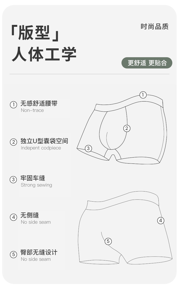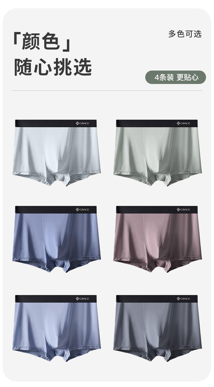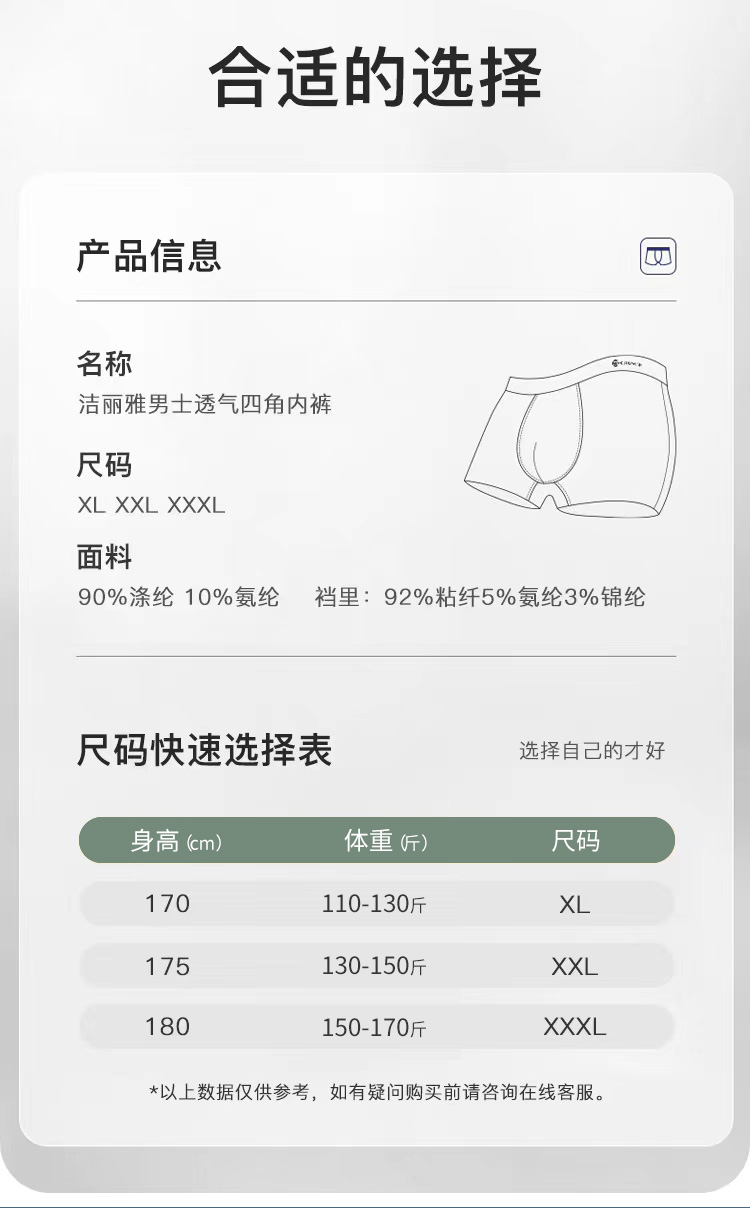 洁丽雅4条装中腰男士内裤柔软舒适亲肤透气双层内裆简约平角裤